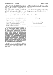 Um- Bezirk Anla- Anla- Anla- Datum AH- nut- ge ge ge Vorgang / zungs- Beschl. ziel ge- unge- Teil- Vorlage Titel deckt deckt fläche Schul- Pankow x 081028 Aufgabe gemäß § 7 Abs. 2 Sportförderungsgesetz der Sporthalle der Rosa-Luxemburg-Oberschule im Bezirk Vorgang Mensa und Ortsteil Pankow zugunsten der Nutzung als Schul-Mensa Vorlage zur Beschlussfassung vom 21.10.2008 Drucksache 16/1853 Öff. Pankow x 110301 Aufgabe gemäß § 7 Abs. 2 Sportförderungsgesetz der Sportstätten am Weißen See, Berliner Allee 127 im Be- Vorgang Grün- Fläche zirk Pankow, mit dem Ziel der Veräußerung und städtebaulichen Neuordnung +Städte- Vorlage zur Beschlussfassung vom 01.03.2011 Drucksache 16/3925 bau Privat Pankow x 110503 Aufgabe gemäß § 7 Abs. 2 Sportförderungsgesetz der Sporthalle Eberswalder Str. 10 im Bezirk Pankow, Orts- Vorgang Kultur teil Prenzlauer Berg, zugunsten kultureller Zwecke Vorlage zur Beschlussfassung vom 03.05.2011 Drucksache 16/4097 Woh- Reinicken- x 120614 Aufgabe gemäß § 7 Abs. 2 Sportförderungsgesetz der Sporthalle Stolpmünder Weg 47 im Bezirk Reinicken- Vorgang nungs- dorf innen bau dorf, Ortsteil Heiligensee, zwecks Veräußerung für Wohnungsbau Vorlage zur Beschlussfassung vom 27.03.2012 Drucksache 17/0253 Privat Treptow - x 081111 Förmliche Aufgabe gemäß § 7 Abs. 2 Sportförderungsgesetz von Teilflächen der öffentlichen Sportanlage "An Vorgang Sport Köpenick (Erb- der alten Försterei", An der Wuhlheide 265 in 12555 Berlin, Bezirk Treptow-Köpenick, Ortsteil Köpenick, mit Pacht) dem Ziel der Sicherung des Standortes und des eigenverantwortlichen Betriebs durch den nutzenden Verein im Wege eines Erbbaurechtsvertrages Vorlage zur Beschlussfassung vom 11.11.2008 Drucksache 16/1904 Öff. Treptow - x 091103 Aufgabe gemäß § 7 Abs. 2 Sportförderungsgesetz der öffentlichen Sportfläche "Sportplatz Birkenwäldchen" Vorgang Grün- Köpenick fläche im Ortsteil Treptow zwecks Renaturierung im Rahmen der bezirklichen Ausgleichsflächen-konzeption Vorlage zur Beschlussfassung vom 03.11.2009 Drucksache 16/2750 Schul- Treptow - x 110201 Aufgabe gemäß § 7 Abs. 2 Sportförderungsgesetz von drei Sporthallen im Bezirk Treptow-Köpenick, Vorgang Mensa Köpenick + SpH- innen Ortsteil Friedrichshagen, zugunsten von Schulmensen und Hallenneubauten im Rahmen des Konjunkturprogramms II Neubau Vorlage zur Beschlussfassung vom 01.02.2011 Drucksache 16/3842: 1. Aßmannstr. 10 und 11 Schul- Treptow - x 110201 Aufgabe gemäß § 7 Abs. 2 Sportförderungsgesetz von drei Sporthallen im Bezirk Treptow-Köpenick, Vorgang Mensa Köpenick Ortsteil Friedrichs-hagen, zugunsten von Schulmensen und Hallenneubauten im Rahmen des Konjunkturprogramms + SpH- innen Neubau II Vorlage zur Beschlussfassung vom 01.02.2011 Drucksache 16/3842: 2. Bruno-Wille-Str. 37/ 39 4