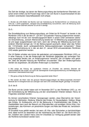 -4- Die Zahl der Anträge, bei denen der Betreuungsumfang des familienfernen Elternteils zwi- schen einem Drittel und 50 Prozent liegt, wird in der vom Bund in Zusammenarbeit mit den Ländern vereinbarten Geschäftsstatistik nicht erfasst. 5. Wurden die UVG-Stellen der Bezirke nach der Veränderung der Bundesrichtlinien zur Umsetzung des UVG ab 1.1.2018 angewiesen, zwingend eine Einzelfallprüfung vorzunehmen, wenn die Betreuung durch den familienfernen Elternteil zwischen 33 und 50 % beträgt. Zu 5.: Die Einzelfallprüfung zum Betreuungsumfang „ein Drittel bis 50 Prozent“ ist bereits in die Richtlinien UVG in der ab dem 01. Juli 2017 anzuwenden Fassung aufgenommen worden, allerdings noch mit der vom Verwaltungsgericht Berlin in einem Urteil vertretenen stärke- ren Einschränkung, „wonach Alleinerziehung bereits bei 1/3 Mitbetreuung ausgeschlossen ist und sogar ausgeschlossen sein kann, wenn der Umfang der Mitbetreuung durch den anderen Elternteil weniger als 1/3 der Betreuungszeit ausmacht, dieser aber das Fehlen der 1/3-Schwelle durch außergewöhnliche Betreuungsleistungen kompensiert.“ Diese stärkere Einschränkung ist in den ab dem 01. Januar 2018 anzuwendenden Richtlinien UVG wieder gestrichen worden. Die UV-Stellen erhalten wie immer die geänderten und angepassten Richtlinien UVG u.a. in einer Fassung, in der die Änderungen der Richtlinien gegenüber der vorherigen Fas- sung angezeigt werden (als „im Änderungsmodus“ benannt). Die UV-Stellen sind gehal- ten, stets die aktuelle Fassung der Richtlinien anzuwenden. Über den Änderungsmodus werden sie angewiesen, die aktuellen Änderungen zu beachten. 6. Wie erfolgt die Prüfung der qualitativen Kriterien im Einzelfall, bei welchem Elternteil der Lebensmittelpunkt des Kindes und somit die überwiegende Erziehungsverantwortung und Befriedigung der elementaren Lebensbedürfnisse liegt? 7. Wie genau erfolgt die Berechnung der Betreuungsanteile beider Eltern? 8. Wie werden die Eltern über die genauen Berechnungsgrundlagen der Betreuungsanteile informiert? Bedeutet der im Antragsformular aus Leitungen nach dem UVG verwendete Begriff „ganztags“ 24 Stunden? Zu 6. bis 8: Der Bund und die Länder haben sich im November 2017 zu den Richtlinien UVG u.a. mit der Konkretisierung der Mitbetreuung und den verschiedenen Kriterien befasst. Hierzu ist Folgendes vereinbart worden: Es können verschiedene Kriterien herangezogen werden, etwa Übernahme der Verant- wortung für Mahlzeiten, Kleidung, Wäsche des Kindes, für Hausaufgaben, Hobbys, Wege des Kindes, für Arztbesuche und für die Betreuung in Krankheitszeiten des Kindes. In Zweifelsfällen kann auch der Besuch von Elternabenden und sonstigen (Schul-/Kita-) Ver- anstaltungen, das Kümmern um persönliche Sorgen und Nöte des Kindes etc. berücksich- tigt werden. Im Einzelfall muss geklärt werden, bei wem z.B. Kita- oder Schulzeiten zu berücksichtigen sind; dabei kommt es wesentlich auf die Vereinbarung der Eltern an. Der Bund wird prü- fen, inwiefern den Ländern hierzu eine Art Checkliste zur Verfügung gestellt werden oder die Richtlinie konkretisiert werden kann.