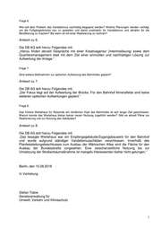 Frage 6: Wie soll dem Problem des Vandalismus nachhaltig begegnet werden? Welche Planungen werden verfolgt, um die Fußgängerbrücke neu zu gestalten und damit unattraktiv für Vandalismus und attraktiv für die Bevölkerung zu machen? Bis wann ist mit einer Realisierung zu rechnen? Antwort zu 6: Die DB AG teilt hierzu Folgendes mit: „Hierzu finden derzeit Gespräche mit einer Kreativagentur (Interimslösung) sowie dem Quartiersmanagement statt mit dem Ziel einer sinnvollen und nachhaltigen Lösung zur Aufwertung der Anlage.“ Frage 7: Sind weitere Maßnahmen zur optischen Aufwertung des Bahnhofes geplant? Antwort zu 7: Die DB AG teilt hierzu Folgendes mit: „Der Fokus liegt auf der Aufwertung der Brücke. Für den Bahnhof Ahrensfelde sind keine weiteren optischen Aufwertungen geplant.“ Frage 8: Das frühere Wartehaus für Reisende am nördlichen Kopf des Bahnhofes ist seit langer Zeit geschlossen. Warum konnte das Wartehaus bisher keiner neuen Nutzung zugeführt werden? Gibt es aktuell Pläne zur Reaktivierung und zur Nutzung des Gebäudes? Antwort zu 8: Die DB AG teilt hierzu Folgendes mit: „Das besagte Wartehaus war ein Empfangsgebäude/Zugangsbauwerk für den Bahnhof und wurde aufgrund ständiger Vandalismusschäden verschlossen. Innerhalb des Planfeststellungsbeschlusses zum Ausbau der Märkischen Allee wird die Fläche für den Ausbau der Bundesstraße vorgesehen. Eine zwischenzeitliche Nutzung bis zur Umsetzung der Straßenbaumaßnahme ist mangels Interessenten bisher nicht gelungen.“ Berlin, den 15.08.2018 In Vertretung Stefan Tidow Senatsverwaltung für Umwelt, Verkehr und Klimaschutz 3