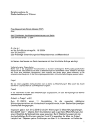 Senatsverwaltung für Stadtentwicklung und Wohnen Frau Abgeordnete Sibylle Meister (FDP) über den Präsidenten des Abgeordnetenhauses von Berlin über Senatskanzlei - G Sen - Antwort auf die Schriftliche Anfrage Nr. 18/ 20004 vom 21.Juni 2019 über Freiwillige Mieterhöhungen bei Mietpreisbremse und Mietendeckel Im Namen des Senats von Berlin beantworte ich Ihre Schriftliche Anfrage wie folgt: Vorbemerkung der Abgeordneten: Bisher kam es bei ausgeübten Vorkaufsrechten zu Gunsten landeseigener Wohnungsbaugesellschaften ebenso wie bei Ankaufsfällen durch diese zu Mieterhöhungen für etliche Mieter. Diese erfolgten in der Regel auf Grund einer freiwilligen Vereinbarung. Nach Auskunft des Senats waren diese notwendig, da die entsprechenden Kaufpreise für die Wohnungsbaugesellschaften nicht wirtschaftlich tragbar gewesen wären. Frage 1 Bei wie vielen ausgeübten Vorkaufsrechten kam es bisher zu Mieterhöhungen? Bitte sowohl die Anzahl betroffener Liegenschaften als auch Mietparteien angeben. Frage 2 In wie vielen Fällen wurden dabei Mieterhöhungen ausgesprochen, die über die Regelungen der Berliner Mietpreisbremse hinausgehen? Antwort zu Frage 1 und 2: Zum 31.12.2018 waren 11 Grundstücke, für die zugunsten städtischer Wohnungsunternehmen ein Vorkaufsrecht ausgeübt wurde, in den Bestand der jeweiligen Gesellschaft übergegangen. Insgesamt gab es zum 31.12.2018 für die 241 Wohnungen 72 Mieterhöhungsverlangen. Dies betrifft 6 der 11 Objekte. Bei 5 Grundstücken gab es gar keine Mieterhöhungen, bei einem Objekt ist die Nettokaltmiete sogar gesunken. Bei 4 Objekten bewegen sich die durchschnittlichen Erhöhungen zwischen 5 und 8 % gegenüber der Miete bei Ankauf. Lediglich bei 2 Objekten gab es Erhöhungen von über 10 %. Hier wurden im Vorfeld der 1