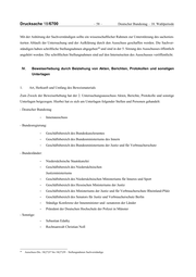 Drucksache 18/6700 – 52 – Deutscher Bundestag – 18. Wahlperiode Die Protokollierung der Sitzungen des Untersuchungsausschusses gemäß § 11 Untersuchungsaus- schussgesetz wird wie folgt durchgeführt: I. Protokolle nichtöffentlicher Sitzungen 1. Die Protokolle der nichtöffentlichen Sitzungen des Ausschusses erhalten die ordentlichen Mit- glieder des Untersuchungsausschusses, ihre Stellvertreterinnen und Stellvertreter, die benannten Mit- arbeiterinnen und Mitarbeiter der Fraktionen sowie die Beauftragten der Bundesregierung und des Bundesrates. Die Übermittlung erfolgt elektronisch und als Ausdruck, wobei die Fraktionen für alle von ihnen benannten Mitarbeiterinnen und Mitarbeiter nur je einen Ausdruck erhalten. 2. Dritte haben grundsätzlich kein Recht auf Einsichtnahme in Protokolle nichtöffentlicher Sit- zungen und folglich auch nicht darauf, dass ihnen Kopien solcher Protokolle überlassen werden. Eine Ausnahme besteht nur gegenüber Behörden, wenn der Untersuchungsausschuss entschieden hat, Amtshilfe zu leisten. II. Protokolle öffentlicher Sitzungen 1. Mit Protokollen öffentlicher Sitzungen beziehungsweise von Sitzungen zur Beweisaufnahme wird ebenso wie unter Abschnitt I. beschrieben verfahren. 2. Einem Dritten kann Einsicht in die Protokolle öffentlicher Sitzungen gewährt werden, wenn er ein ‚berechtigtes Interesse nachweist‘ (Abschnitt II der Richtlinien für die Behandlung der Aus- schussprotokolle gemäß § 73 Abs. 3 GO-BT in der gültigen Fassung). Das Vorliegen des berechtigten Interesses prüft der Vorsitzende. Die Entscheidung über die Gewährung von Einsicht trifft der Aus- schuss. 3. Den Zeugen ist zur Prüfung der Richtigkeit der Protokollierung das Protokoll über ihre Ver- nehmung zuzustellen (§ 26 Abs. 1 Untersuchungsausschussgesetz). III. Protokolle VS-VERTRAULICH oder höher eingestufter Sitzungen 1. Der Zugang zu Protokollen von VS-Vertraulich oder höher eingestuften Sitzungen ist für den unter Nummer I.1 genannten Personenkreis nach den Regeln über die Behandlung von VS-Dokumen- ten möglich. 2. Ist das Protokoll über die Aussage einer Zeugin oder eines Zeugen VS-VERTRAULICH oder höher eingestuft, so ist ihr beziehungsweise ihm Gelegenheit zu geben, dies in der Geheimschutzstelle des Deutschen Bundestages einzusehen. Eine Kopie erhält sie beziehungsweise er nicht.“ „Beschluss 4 zum Verfahren Verteilung von Ausschussdrucksachen, Beweisbeschlüssen und Ausschussmaterialien I. Die Ausschussmaterialien werden wie folgt bezeichnet: 1. MAT A sind Antworten auf Beschlüsse zur Beweiserhebung. Deren Bezeichnung soll die Art des Beweismittels und bei Akten und Daten die herausgebende Stelle deutlich machen. 2. MAT B sind Beweismaterialien, die nicht aufgrund eines Beweisbeschlusses, sondern aufgrund freiwilliger Zusendung eingehen. Deren Bezeichnung soll die herausgebende Stelle deutlich machen.
