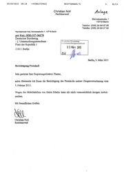 03/03/2015 20:10 s. RECHTSANWAELTE +493062729662 Christian Noll Rechtsanwalt Meinekestraße 7 10719 Benin Telefon: (030) 20 64 37 90 Telefax: (030) 20 64 37 92 Rechtsanwalt Noll, Meinek~etrs.ße 7, 10719 Berlin per Fax: (030) 227-36278 Deutscher Bundestag - 2. Untersuchungsausschuss - Platz der Republik 1 f"1'50ntscher Bundestag Untersuchungsausschuss ,2. 11011 Berlin 0 3. März 2015 Berlin, 3. März 2015 Berichtigung Protokoll Sehr geehrter Herr Regierungsdirektor Piaster, anbei übersende ich Ihnen die Berichtigung des Protokolls meiner Zeugenvernehmung vom 5. Februar 2015. Wegen des Mobiltelefons von Herrn Edathy kann ich mich voraussichtlich morgen zurück- melden. Mit freundlichen Grüßen Cbristian Noll Rechtsanwalt 01 / 14