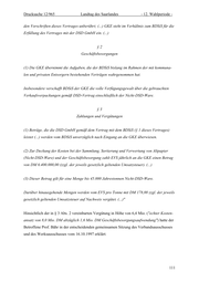 Drucksache 12/965 Landtag des Saarlandes - 12. Wahlperiode - den Vorschriften dieses Vertrages unberührt; (...) GKE steht im Verhältnis zum BDSiS für die Erfüllung des Vertrages mit der DSD GmbH ein. (...) §2 Geschäftsbesorgungen (1) Die GKE übernimmt die Aufgaben, die der BDSiS bislang im Rahmen der mit kommuna- len und privaten Entsorgern bestehenden Verträgen wahrgenommen hat. Insbesondere verschafft BDSiS der GKE die volle Verfügungsgewalt über die gebrauchten Verkaufsverpackungen gemäß DSD-Vertrag einschließlich der Nicht-DSD-Ware. §3 Zahlungen und Vergütungen (1) Beträge, die die DSD GmbH gemäß dem Vertrag mit dem BDSiS (§ 1 dieses Vertrages) leistet (...) werden vom BDSiS unverzüglich nach Eingang an die GKE überwiesen. (2) Zur Deckung der Kosten bei der Sammlung, Sortierung und Verwertung von Altpapier (Nicht-DSD-Ware) und der Geschäftsbesorgung zahlt EVS jährlich an die GKE einen Betrag von DM 6.400.000,00 (zzgl. der jeweils gesetzlich geltenden Umsatzsteuer). (...) (3) Dieser Betrag gilt für eine Menge bis 45.000 Jahrestonnen Nicht-DSD-Ware. Darüber hinausgehende Mengen werden vom EVS pro Tonne mit DM 178,00 zzgl. der jeweils gesetzlich geltenden Umsatzsteuer auf Nachweis vergütet. (...)" Hinsichtlich der in § 3 Abs. 2 vereinbarten Vergütung in Höhe von 6,4 Mio. ("echter Kosten- ansatz von 8,0 Mio. DM abzüglich 1,6 Mio. DM Geschäftsbesorgungsaufwendung") hatte der Betroffene Prof. Bähr in der entscheidenden gemeinsamen Sitzung des Verbandsausschusses und des Werksausschusses vom 16.10.1997 erklärt: 111