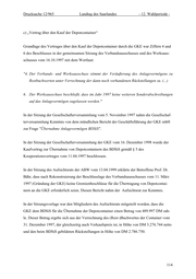 Drucksache 12/965 Landtag des Saarlandes - 12. Wahlperiode - Auch nach der Aussage des Betroffenen Prof. Bähr in der zusammenhängenden Sachdar- stellung vor dem Untersuchungsausschuss vom 20.11.2002 handelt es sich nicht um einen Geschäftsbesorgungsvertrag. Es handelte sich um die Übertragung des gesamten Geschäfts mit der DSD-AG auf Grund des Leistungsvertrages zwischen KABV/BDSiS und DSD-GmbH vom 26.06.1992: „Diese Übertragung mit allen Vor- und Nachteilen ist aus Gründen, die vor allen Dingen in den Vertragsbeziehungen zwischen dem BDSiS und der DSD-Aktiengesellschaft liegen, in das formale Gewand eines Geschäftsbesorgungsvertrages eingekleidet worden. Es ist jedoch nie ein Geschäftsbesorgungsvertrag im Sinne von § 675 BGB gewesen. (...) Diese Information war bei den Bürgermeistern vorhanden“ Im Vertrag zwischen dem KABV und der DSD-GmbH heißt es einschränkend in § 2 Ziff. 4: „Der KABV ist berechtigt, Subunternehmer unbeschadet der bei ihm verbleibenden Gesamt- verantwortung einzusetzen“ In der Sachdarstellung des Betroffenen Prof. Bähr heißt es weiter: „In der Sitzung vom 16. Oktober 1997 haben ich als Verbandsvorsteher und Werkleiter und auch der anwesende C & L-Berater Nospers gerade dieses Thema den Bürgermeistern sehr ausführlich erklärt. Wir haben auch erklärt, warum nicht der Kooperationsvertrag en bloc auf die GKE übertragen werden soll, sondern warum man die „Krücke“ des Geschäftsbesor- gungsvertrages genommen hat. (...) Wir haben damals jedoch nicht alles ins Protokoll ge- schrieben, weil zu befürchten war, dass sich das DSD die Möglichkeit nehmen würde, den ganzen Vertrag mit der Begründung zu lösen, es habe den alten Partner nicht mehr. Das wäre ein sehr teures und unglückliches Resultat gewesen.“ In Beantwortung des 42. Beweisbeschlusses des Untersuchungsausschusses vom 3.12.2002 haben der EVS und die GKE mitgeteilt, dass keinerlei Unterlagen gefunden wurden, aus de- nen hervorgeht, dass der KABV/EVS oder die GKE die DSD über Abschluss oder Inhalt des Geschäftsbesorgungsvertrages informiert hätten. 117
