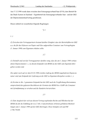 Drucksache 12/965 Landtag des Saarlandes - 12. Wahlperiode - Am 17.12.1998 wurde dann zwischen dem Entsorgungsverband Saar (EVS), dem Betrieb für das Duale System im Saarland – Eigenbetrieb des Entsorgungsverbandes Saar - und der GKE der Depotcontainerkaufvertrag geschlossen. Dieser enthielt im wesentlichen folgende Regelungen: "§ 1 (...) (2) Zwischen den Vertragspartnern bestand darüber Einigkeit, dass die Betriebsführerin GKE u.a. die für das Erfassen von Papier und Glas aufgestellten Container zum Vertragsbeginn (1. Januar 1998) zum Eigentum erhalten sollte. §2 (1) Deshalb sind sich die Vertragspartner darüber einig, dass die am 1. Januar 1998 vorhan- denen Depotcontainer (...) zu diesem Zeitpunkt vom BDSiS an die GKE zum Eigentum über- geben worden sind. Die später noch auf vor dem 01.01.1998 erteilten Auftrag des BDSiS angelieferten Depotcon- tainer sind zum Zeitpunkt der Lieferung an die GKE zu Eigentum übergeben worden. (...) (4) Zu dem in Abs. 1 genannten Zeitpunkt hat die GKE auch die Verpflichtung übernommen, entsprechend den gefassten Beschlüssen der Gremien des BDSiS bzw. KABV die Container mit Lärmdämmung zu versehen und die Standorte herzurichten. §3 (1) Zum Ausgleich der sich aus diesem Vertrag ergebenden Rechte und Pflichten hat der BDSiS die für die Erfüllung der in § 2 Abs. 4 umschriebenen Arbeiten gebildeten Rückstel- lungen zum 1. Januar 1998 auf die GKE übertragen. Diese belaufen sich auf DM 2.786.750,00. 115
