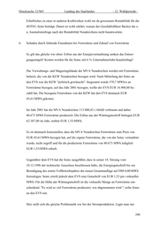 Drucksache 12/965 Landtag des Saarlandes - 12. Wahlperiode - einen Mittelwert beim Verkauf der Fernwärme (vorsichtig gerechnet) von EUR 35,00/MWh zugrunde (die dann von der KEW selbst mit EUR 45,61/MWh verkauft werden könnten), ergäbe sich (EUR 35,00 fiktiver Preis, abzüglich EUR 1,53 Gut- schrift/MWh) eine Summe an Wärmeerlös von EUR 1.361.325,30/a zugunsten des EVS. Es ist davon auszugehen, dass in etwa ähnliche Zahlen seit 1997 festzuhalten sind, mithin beläuft sich dieser Schaden auf die 6-fache Summe, demnach EUR 8.167.951,00. 7. Schaden durch einen Wagnisaufschlag ohne Wagnis Auf Finanzierungskosten von 14 Mio. Euro zahlt der EVS einen "Wagniszuschlag" von 4 % an die SOTEC, obwohl keinerlei Wagnis besteht. Durch Patronatserklärungen, die sicherstellen, dass, sofern die Sotec in Insolvenz fällt, der EVS alles fortführen und (wie bisher) weiter bezahlen muss, durch eine Abtretung des Entsorgungsvertrages zwischen EVS und MVA Neunkirchen an eine Leasinggesellschaft durch eine Bürgschaftserklä- rung des EVS gegenüber der finanzierenden Bank liegt alles wirtschaftliche Risiko für die MVA Neunkirchen ausschließlich beim EVS und kein Risiko bei der Sotec. Dass hierfür noch ein "Wagnisaufschlag" an die Sotec gezahlt werden muss, ist unzumutbar und benachteiligt den Gebührenzahler Jahr für Jahr aufs Neue. Der Schaden beläuft sich auf 560 TEUR/a. Bislang (1997 - 2002) EUR 3.336.000,00. Als Fazit für die Feststellungen beim MHKW in Neunkirchen stellt der Ausschuss fest, dass sämtliche vertraglichen Vereinbarungen, sei es innerhalb des Technischen Aus- schusses, sei es außerhalb des TA und ihre Abwicklung zwischen den Vertragspartnern EVS und SOTEC seit Beginn des Entsorgungsvertrages 1994 überprüft werden müssen. Gerade die im TA getroffenen Absprachen, wonach Energieerlöse "auf Null" gesetzt werden, offenbar auch in Neunkirchen fehlende Ausschreibungen bei der Vergabe von Aufträgen für die Entsorgung, aber auch die Versorgung mit Betriebsstoffen, gegebe- nenfalls die Begünstigung von Tochter- oder Schwester- bzw. Beteiligungsunternehmen der SOTEC bei der Entsorgung führen zur Feststellung, dass Grundsätze der Wirtschaft- lichkeit und Sparsamkeit offenkundig nicht immer gewahrt sind und die Aufsichtsgre- mien auch im TA, die gleichzeitig Entscheidungsgremien waren, den an sie gestellten Anforderungen nicht gerecht geworden sind. Aufforderungsansprüche gegenüber dem 241