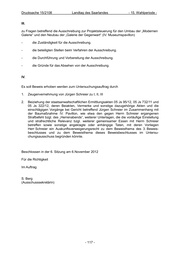 Drucksache 15/2108 Landtag des Saarlandes - 15. Wahlperiode - III. zu Fragen betreffend die Ausschreibung zur Projektsteuerung für den Umbau der „Modernen Galerie“ und den Neubau der „Galerie der Gegenwart“ (IV. Museumspavillon) - die Zuständigkeit für die Ausschreibung. - die beteiligten Stellen beim Verfahren der Ausschreibung. - die Durchführung und Vorbereitung der Ausschreibung. - die Gründe für das Absehen von der Ausschreibung. IV. Es soll Beweis erhoben werden zum Untersuchungsauftrag durch 1. Zeugenvernehmung von Jürgen Schreier zu I, II, III 2. Beiziehung der staatsanwaltschaftlichen Ermittlungsakten 05 Js 95/12, 05 Js 732/11 und 05 Js 322/12, deren Beiakten, Vermerke und sonstige dazugehörige Akten und die einschlägigen Vorgänge bei Gericht betreffend Jürgen Schreier im Zusammenhang mit der Baumaßnahme IV. Pavillon, wie etwa den gegen Herrn Schreier ergangenen Strafbefehl bzgl. des „Herrenabends“, weiterer Unterlagen, die die vorläufige Einstellung und strafrechtliche Relevanz bzgl. weiterer gemeinsamer Essen mit Herrn Schreier betreffen sowie sonstige angeklagte oder anhängige Taten, mit deren Vorliegen Herr Schreier ein Auskunftsverweigerungsrecht zu dem Beweisthema des 3. Beweis- beschlusses und zu dem Beweisthema dieses Beweisbeschlusses im Untersu- chungsausschuss begründen könnte. Beschlossen in der 6. Sitzung am 6.November 2012 Für die Richtigkeit Im Auftrag S. Berg (Ausschusssekretärin) - 117 -