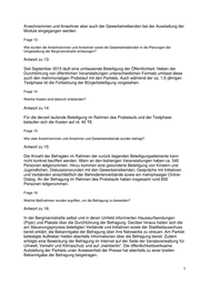 Anwohnerinnen und Anwohner aber auch der Gewerbetreibenden bei der Ausstattung der Module eingegangen werden. Frage 13: Wie wurden die Anwohnerinnen und Anwohner sowie die Gewerbetreibenden in die Planungen der Umgestaltung der Bergmannstraße einbezogen? Antwort zu 13: Seit September 2015 läuft eine umfassende Beteiligung der Öffentlichkeit. Neben der Durchführung von öffentlichen Veranstaltungen unterschiedlichen Formats umfasst diese auch den mehrmonatigen Probelauf mit den Parklets. Auch während der ca. 1,5-jährigen Testphase ist die Fortsetzung der Bürgerbeteiligung vorgesehen. Frage 14: Welche Kosten sind dadurch entstanden? Antwort zu 14: Für die derzeit laufende Beteiligung im Rahmen des Probelaufs und der Testphase belaufen sich die Kosten auf rd. 40 T€. Frage 15: Wie viele Anwohnerinnen und Anwohner und Gewerbetreibende wurden befragt? Antwort zu 15: Die Anzahl der Befragten im Rahmen der zurück liegenden Beteiligungselemente kann nicht konkret beziffert werden. Allein an den bisherigen Veranstaltungen haben ca. 540 Personen teilgenommen. Hinzu kommen eine gesonderte Beteiligung von Kindern und Jugendlichen, Diskussionsrunden mit den Gewerbetreibenden, Gespräche mit Initiativen und Verbänden einschließlich der Behindertenverbände sowie ein mehrphasiger Online- Dialog. An der Befragung im Rahmen des Probelaufs haben insgesamt rund 650 Personen teilgenommen. Frage 16: Welche Maßnahmen wurden ergriffen, um die Befragung zu bewerben? Antwort zu 16: In der Bergmannstraße selbst und in deren Umfeld informierten Hauswurfsendungen (Flyer) und Plakate über die Durchführung der Befragung. Darüber hinaus hatten sich die am Steuerungsprozess beteiligten Verbände und Initiativen sowie der Stadtteilausschuss bereit erklärt, die Bekanntgabe der Befragung über ihre Netzwerke zu streuen. Am Parklet befestigte Aufkleber hielten ebenfalls Informationen über die Befragung bereit. Zudem erfolgte eine Bewerbung der Befragung im Internet auf der Seite der Senatsverwaltung für Umwelt, Verkehr und Klimaschutz und auf „meinberlin“. Die öffentlichkeitswirksame Aufstellung der Parklets unter Anwesenheit der Presse hat ebenfalls zu einer breiten Bekanntgabe der Befragung beigetragen. 4