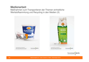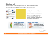 Medienarbeit Maßnahmen zum Transportieren der Themen einheitliche Wertstoffsammlung und Recycling in den Medien (III) Zur Veröffentlichung kamen die für die „Trenntstadt Berlin“ entwickelten Motive „Kunststoffbecher“, „Weißblechdose“ und „Getränkekarton“. Teilweise erschienen parallel zu den Anzeigen Teaser in den Online-Versionen der gebuchten Titel. So konnte in den neuen Medien ergänzend Aufmerksamkeit generiert werden. 107 Nebenentgelte der Dualen Systeme in Berlin / Berichtsjahr 2015