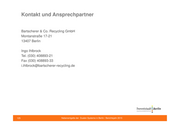 Kontakt und Ansprechpartner Bartscherer & Co. Recycling GmbH Montanstraße 17-21 13407 Berlin Ingo Ihlbrock Tel. (030) 408893-21 Fax (030) 408893-33 i.ihlbrock@bartscherer-recycling.de 125 Nebenentgelte der Dualen Systeme in Berlin / Berichtsjahr 2015