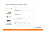 Umsetzung mit Partnern (bis 2016) Die BSR ist eines der führenden kommunalen Entsorgungsunternehmen in Europa und versteht sich heute mehr denn je als kommunales Umweltunternehmen. Berlin Recycling ist Marktführer in der haushaltsnahen Sammlung von PPK und Glas und zählt zu den führenden Dienstleistern in der Berliner Entsorgungsbranche. Die Stiftung Naturschutz Berlin hat über 30 Jahre Erfahrung in der Projektförderung. Sie unterstützt als gemeinnützige Stiftung des Landes Berlin seit 1981 Umweltprojekte in Berlin. Die ALBA-Group zählt weltweit zu den führenden Recyclingspezialisten und Rohstoffanbietern. Seit 40 Jahren steht das Familienunternehmen ALBA für Recycling-Kompetenz in und aus Berlin. Die Bartscherer & Co. Recycling GmbH ist seit 1921 als traditionelles Berliner Mittelstandsunternehmen auf dem Markt für Entsorgung und Recycling tätig. 3 Beiratsitzung der Dualen Systeme in Berlin 13.12.2016
