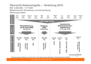 Übersicht Nebenentgelte – Verteilung 2016 EW: 3.484.995 - 1,17 EUR Mittelherkunft, Einnahmen und Verwendung (Werte gerundet) Mittelherkunft (Kostenbeteiligung) DSD Landbell Interseroh Redual RKD ELS Belland VfW Veolia Zentek Noventiz €/a €/a €/a €/a €/a €/a €/a €/a €/a €/a €/a (38,47%) (5,03%) (8,09%) (9,70%) (8,53%) (8,37%) (16,16%) (0,88%) (0,15%) (4,62%) (0,00%) 4.077.444,15 €/a Gesamtsumme Wertstofferfassung Reinigung Öffentlichkeitsarbeit / Thema / auf RC-Höfen (BSR) (BSR) Abfallberatung 450.000 €/a 852.000 €/a 2.775.444,15 €/a Verantwort. Verwendung Summe 1.485.444 193.464 128.268 128.268 852.000 780.000 510.000 0,00* €/a €/a €/a €/a €/a €/a €/a €/a BR inkl. Standplätze Stiftg. Naturschutz ALBA Papier Aktivitäten zu Leichtver- Glas Igluumfeld- packungen reinigung Verpackungen VerpackV bei BSR * Weiterverwendung der Mittel aus den Jahren 2013- 2015 aufgrund unklarer NE-Situation in 2016 keine Zahlung an Stiftung 1 Nebenentgelte der Dualen Systeme in Berlin