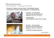 Öffentlichkeitsarbeit „Trenntstadt Berlin“ – Kampagne 2016: Media - Klimaspot: Schaltung Kinospot „Eisbär“, Social Media Seeding - Füchse Berlin: Kinospot „Richtig wegwerfen“ und Blogmarketing - 49 Kinos – 114 Leinwände - 360.000 erreichte Kinobesucher - Zeitraum: 10.11.16 – 07.12.16 - 449 Mal geteilt - 3860 Reaktionen (Likes, Wow, Traurig) - 36 Kinos – 140 Leinwände - 400.000 erreichte Kinobesucher - Zeitraum: 14.01.16 – 10.02.16 - 78.000 Mal via Blog angesehen 10 Beiratsitzung der Dualen Systeme in Berlin 13.12.2016