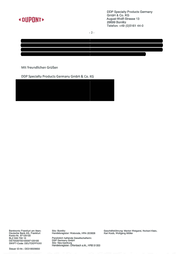 DDP Specialty Products Germany GmbH &Co. KG August-Wolff-Strasse 13 29699 Bomlitz Telefon: +49 (0)5161 44-0 ~~oUPONT• - 2- Mit freundlichen Grüßen DDP Specialty Products Germany GmbH & Co. IKG Bankkonto Frankfurt am Maln: Deutsche Bank AG, Frankfurt Konto·Nr. 97129100 BLZ 500 700 10 DE75500700100097129100 SWIFT-Code: DEUTDEFFXXX Steuer 10-Nr.: DE318509650 Sitz: Bomlitz Handelsregister: Walsrode, HRA 203828 Persönlich haftende Gesellschafterin: DSP Germany GmbH Sitz; Neu·lsenburg Handelsregister: Offenbach a.M., HIRB 51353 Geschäftsführung: Marlon Weigand, Norbert Klein, Karl Koob, Wolfgang Möller