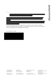 Seit e 2 vo n 2 Die Bereitschaft steht unter dem Vorbehalt einer rechtlichen und finanziellen Prüfung der konkreten Ausgestaltung der vertraglichen Vereinbarungen. Sollte es sich als sinnvoll erweisen, wird das Projekt über eine Projektgesellschaft erfolgen . Mit freundlichen Grüßen Quesenfeld GmbH Roth bergstrasse 8 38176 Wendeburg Geschäftsführer Christian Hanisch Prof. Dr. Tobias Elwert Amtsgericht Braunschweig RE!gisternummer HRB 206506 Commerzbank DE26 2704 0080 0505 0208 00 COBADEFFXXX HypoVereinsbank DE22 7002 0270 0015 6861 00 HYYEDEMMXXX duesenfeld.com Tel +49 5303 508 28-0 USt-ID DE31 0194666 info@duesenfeld.com Fax +49 5303 508 28 - 200 Steuernummer 14/21 0/1 0876