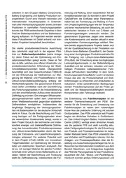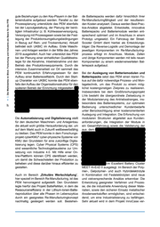 al LL. LL. .!!! 'tl - ... :::I .!!! t/) ns al ~ ns Cl> ·;: u; ::I 'tl c: 'tl c: ::I Cl c: ::I .r:: (.) ~ 0 LL. _;.: .!:! iii E Cl> ~ ... :ns ....E Q; ;: Cl> c ,.; • arbeitern in den Gruppen Battery Components, Battery Engineering und Battery Production vor- angetrieben. Durch eine Vielzahl nationaler und internationaler Industrieprojekte in Unterneh- men aller Wertschöpfungsstufen sowie zentraler Positionen in namhaften Forschungsprojekten konnte das PEM weitreichende Expertise in dem Feld der Batterieproduktion und der Batterieaus- legung aufbauen . Im Folgenden werden werden diese Fokusthemen im Detail anhand von kon- kreten Projekten beispielhaft beschrieben. Die starke produktionstechnische Ausrichtung des Lehrstuhls zeigt sich in der eigenen Pilot- linie zur Batteriezellproduktion (siehe Anlage A), deren Fokus auf die Optimierung von Ein- zelprozessschritten gelegt wurde. Diese ist Teil des eLABs, welches eine offene Infrastruktur zur produktionstechnischen Erforschung der Elekt- romobilitätskomponenten bietet. Übergeordnet beschäftigt sich das Gesamtvorhaben FAB4LIB mit der Erforschung der Maßnahmen zur Stei- gerung der Material- und Prozesseffizienz in der Lithium-Ionen-Batteriezellfertigung entlang der Wertschöpfungskette. Die gewonnenen Erkennt- nisse sollen unmittelbar nach der Durchführung des Forschungsprojektes in die Industrialisierung und den anschließenden Aufbau einer deutschen Zellfertigung münden. Die erlangten Effizienzstei- gerungsmaßnahmen sollen dem Unternehmen einen Wettbewerbsvorteil gegenüber etablierten Zellherstellern ermöglichen. Insbesondere die langfristige Steigerung der Versorgungssicher- heit mit Batteriezellen für die deutsche Wirtschaft steht im Fokus. Da die Beschichtung und Trock- nung bezogen auf die Fertigungskosten einen der wesentlichen Kostenanteile belegt, wurde in dem Projekt ExLalib die technische und insbe- sondere energie- und materialeffiziente Optimie- rung des konventionellen Produktionsprozesses von Lithium-Ionen-Batteriezellen durch die Nut- zung der Extrusions- und Lasertrocknungstech- nologien adressiert. Ein weiteres Potential wird in dem Projekt lnTreS mithilfe von innovativen Trägermaterialien zur Optimierung der Stromab- leiter von elektrischen Speichern analysiert. Ziel ist es, mit weniger Material die gleiche Funktion innerhalb einer Lithium-Ionen-Batteriezelle zu er- zielen. Neben der Beschichtung und Trocknung stellt die Zellfinalisierung, insbesondere die For- mierung und Reifung , einen wesentlichen Teil der Investitionskosten dar. So konnten in dem Projekt OptiZeiiForm die Einflüsse einer Parameterva- riation bei der Formierung und Reifung in Form von Umgebungsbedingungen wie der Temperatur und einer mechanischen Belastung , als auch der elektrischen Variation in Form von G-Raten und Formierungsstrategien untersucht werden. Die gewonnenen Ergebnisse zeigen eine wesentli- che Kostenersparnis und werden aktuell in einer umgerüsteten Formierungsanlage validiert. Wei- tere bereits abgeschlossene Projekte haben sich mit der Qualitätssicherung in der Produktion von Lithium-Ionen-Batterien (QuasiBat II), der Gestal- tung einer durchgängigen Produktionsstruktur für die Fertigung von Lithium-Ionen-Batteriezellen (ProliBat), der Entwicklung eines durchgängigen Ladungsträgerkonzepts in der Batteriefertigung (LakoBat) und der sicheren, robusten und nach- haltigen Produktion batterieelektrischer Fahr- zeuge (eProduction) beschäftigt. ln dem Groß- forschungsprojekt Anlauffabrik I und II ist darüber hinaus das Ziel , die Produzierbarkeil von Elek- trofahrzeugen zu erforschen und Anlaufzeiten zu reduzieren. Unter serienähnlichen Bedingungen werden Produktionsprozesse auf die Probe ge- stellt und die Massenproduktfähigkeit einzelner Komponenten oder Fahrzeuge realisiert. Die Entwicklung von Fabrikkonzepten ist ein weiterer Themenschwerpunkt am PEM . Ele- mentar für die Entwicklung und Umsetzung von Fabrikkonzepten ist neben dem notwendigen Know-How die praktische Erfahrung mit solchen Großprojekten. Das PEM unterstützt seit Projekt- beginn ein ähnliches Vorhaben in Großbritanni- en. Das United Kingdom Battery lndustrialisation Centre (UKBIC) verfolgt einen ähnlichen Ansatz wie die geplante FFB und stellt zukünftig aktu- ellste Fertigungstechnologien für die Erforschung von Produkt- und Prozessinnovationen im indus- triellen Maßstab bereit. Das PEM unterstützt die- ses Vorhaben seit Projektbeginn intensiv. Von der Anlagen- und Prozessspezifikation über die Er- stellung von Ausschreibungsunterlagen bis hin zu Besuchen bei internationalen Zulieferem aus dem Bereich Maschinen- und Anlagenbau begleitete das PEM die Planungsphase für das Produktions- equipment der Zell-, Modul- und Packfertigung. Hierdurch konnten großes Erfahrungswissen und