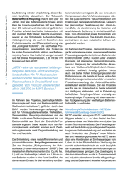 al LL. LL. .!!! 'tl - ... :::I .!!! t/) ns al ~ ns Cl> ·;: u; ::I 'tl c: 'tl c: ::I Cl c: ::I .r:: (.) ~ 0 LL. _;.: .!:! iii E bauförderung mit der Verpflichtung, diesen Be- reich langfristig abzusichern. Der Teilbereich Batterie/WEEE-Recycling macht seit über 20 Jahren über alle Batteriesysteme hinweg einen Kern der Forschungsarbeit am IME aus. Neben über 20 national und international geförderten Projekten arbeitet das Institut insbesondere mit den diversen KMU dieser Branche zusammen, sowohl an der Schnittstelle Aufbereitung/Mate- rialrückgewinnung, als auch in Bereichen des Produktionsaudits, der Effizienzabsicherung wie des "ecological footprints". Die nachhaltige Pro- zessentwicklung einschließlich des Scale-Ups bis in den Tonnenmaßstab ist Kern des Batterie- recycling-Teams. Das Institut ist sehr gut vernetzt und hat diverse Kooperationen, z. B. mit der FH Münster und dem MEET. Cl> ~ ... :ns ....E Q; ;: Cl> c ,.; • 0 M "NRW- eine der europaweit leistungs- fähigsten Bildungs- und Forschungs- landschaften: An 70 Hochschulen wird ein Viertel des akademischen Nachwuchses in Deutschland aus- gebildet. Von 760.000 Studierenden allein 285.000 im MINT-Bereich." Im Rahmen des Projektes "Nachhaltige Mobili- tätskonzepte auf Basis von Elektromobilität und Stadtwerkeinfrastrukturen", gefördert durch das BMVI, wurden Veränderungen aufgezeigt, die sich für Fahrzeugbatterievertreiber, Werkstätten, Sammelstellen, Recyclingunternehmen und die Städte durch einen Technologiewechsel hin zur Elektromobilität aus Sicht der End-of-Life-Pro- blematik ergeben. Dabei wurden nicht nur Re- cyclingkonzepte erarbeitet, sondern auch Zweit- nutzungskonzepte samt Gegenüberstellung der Vor- und Nachteile. Die Entwicklung eines reststoffminimierten und prozessstufenarmen Recyclingprozesses war Ziel des Projektes "Rückgewinnung der Roh- stoffe aus Li-Ionen-Akkumulatoren" (BMBF). Die metallischen Wertkomponenten (Co, Cu , Al , Fe, Li) und das hochwertige Leitsalz aus Lithium-Io- nen-Batterien wurden in eine Form überführt, die den erneuten Einsatz für die Herstellung von Bat- teriematerialien ermöglicht. Zu den innovativen Kernprozessen des Verfahrenskonzeptes zäh- len die quasi-isotherme Vakuumdestillation von Elektrolyten (temperaturempfindliches Leitsalz!) bei gleichzeitiger Deaktivierung der Lithium-Io- nen-Zelle, die Zerkleinerung der Batterien und anschließende Sortierung in ein kohlenstoffhal- tiges Co-Li-Konzentrat sowie Konzentrate von Kupfer und Aluminium. Das Kobalt-Lithium-Kon- zentrat kann bis zum metallischen Lithium auf- gearbeitet werden . Im Rahmen des Projektes "Demonstrationsanla- ge für ein kostenneutrales, ressourceneffizientes Processing ausgedienter Li-Ionen-Batterien der Elektromobilität" (BMU) wurden unter anderem Konzepte mit integrierten Demonstrationsanla- gen zur Steigerung der wirtschaftlichen Akzep- tanz und Wettbewerbsfähigkeit durch Kosten- reduktion realisiert. Anteilig gehören hierzu auch die bisher hohen Entsorgungskosten der Batteriemodule, die bereits in heute verkauften Elektrofahrzeugen entsprechend der erweiterten Produktverantwortung der Automobilhersteller einkalkuliert werden müssen. Ziel des Projektes war für die, im Unterschied zu heute industriell zur Verfügung stehenden und in Entwicklung befindlichen Recyclingverfahren erstmalig ein kostengünstiges Processing mit einer maximier- ten Rückgewinnung der werthaltigen Batteriein- haltsstoffe zu verbinden . NanoEnergieTechnikZentrum - NETZ der Universität Duisburg-Essen (UDE) NETZ unter der Leitung von PD Dr. habil. Hartmut Wiggers arbeitet u. a. auf dem Gebiet der Gas- phasensynthese von Materialien vom Labor- bis in den Technikumsmaßstab. Der Fokus liegt so- wohl auf der Aufklärung grundlegender Fragestel- lungen von Partikelentstehung und-wachstumals auch hinsichtlich des "Designs" neuer Materia- lien und Herstellungsprozesse. Am NETZ stehen dazu eine Kombination an Syntheseanlagen vom Labor- bis in den Pilotmaßstab zur Verfügung, die sowohl sicherheitstechnisch als auch bezüglich der erzielbaren Reinheilen den Anforderungen an Industrieprozesse genügen . Die Übertragung in den Industriemaßstab wurde in Zusammenarbeit mit Industrieunternehmen bereits erfolgreich ge- zeigt und ist Gegenstand aktueller Kooperationen