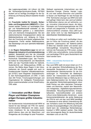 al LL. LL. .!!! 'tl - ... :::I .!!! t/) ns al ~ ns Cl> ·;: u; ::I 'tl c: 'tl c: ::I Cl c: ::I .r:: (.) ~ 0 LL. _;.: .!:! iii E Cl> ~ ... :ns ....E Q; ;: Cl> c ,.; • N M das Legierungsverhalten mit Lithium mit Hilfe der Hochenergie-Synchrotron-Quelle PETRA3 studiert und so wichtige Grundlagen für die Op- timierung und Nutzung Silizium-basierter Anoden gelegt. Am Fraunhofer Institut für Umwelt-, Sicher- heits- und Energietechnik (UMSICHT) in Ober- hausen werden Themen zur nachhaltigen Ener- gie- und Rohstoffwirtschaft erarbeitet. Zu den Kompetenzfeldern gehören u. a. elektrochemi- sche und chemische Energiespeicher. Bei den elektrochemischen Energiespeichern stehen die Batterieentwicklung und -fertigung im Fokus. Kern der Forschung sind bipolar aufgebaute Bat- teriespeicher. Ferner werden Batteriesysteme, das Stackdesign und auch optimierte Materialien entwickelt. ln der Region Ostwestfalen-Lippe hat sich ein Hotspot der Industrie 4.0 und Automatisierung etabliert. Beispielhaft sind hier die Universität Bielefeld , Universität Paderborn, die Technische Hochschule Ostwestfalen-Lippe, das Fraunho- fer-lnstitut für Entwurfstechnik und Mechatronik (IEM) und das Fraunhofer-lnstitut für Optronik, Systemtechnik und Bildauswertung (IOSB) zu nennen. Die Stärke dieser Region in den Indus- triethemen der Zukunft spiegelt sich auch im Exzellenzcluster Kognitive Interaktionstechnolo- gie (CITEC) samt integrierter Graduiertenschu- le, dem Technologienetzwerk "it's OWL", in dem über 200 Firmen , Forschungseinrichtungen und Organisationen für intelligente Produktionsver- fahren zusammenarbeiten und der SmartFactory- OWLwider. 3.2 Innovation und Mut: Global Player und Hidden Champions prägen Europas größte Industrie- nation Die facettenreiche Industrielandschaft NRW ist Garant für das Gelingen der FFB. Ein starker, hochinnovativer Mittelstand mit vielen , exzel- lenten Zulieferem für die Automobilindustrie gehört ebenso dazu wie der Maschinen- und Anlagenbau als Grundlage für jede Produktion . Weltweit operierende Unternehmen aus den Bereichen Energie, Chemie, Handel , Logis- tik und viele weitere Branchen sind potentiel- le Nutzer und Nachfrager für das Konzept der FFB . Technische Lösungen aus NRW sind welt- weit gefragt. Dabei kann das Land auf etablier- te Weltmarken ebenso wie auf zahlreiche , jun- ge, innovative Unternehmen bauen , die Ideen, Konzepte und Forschungsergebnisse der FFB schnell und zielgerichtet in Produkte und Pro- duktionsverfahren umsetzen . Dazu zählt auch, aber sicher nicht nur das Marktsegment der elektrifizierten Mobilitätslösungen. Von Anfang an sollen auch nachhaltige Lösun- gen im Fokus der Forschung stehen, die den gesamten Lebenszyklus der Batterie-(zellen) im Blick hat. Deshalb wollen und werden auch leistungsfähige kompetente Recyclingunter- nehmen die Potenziale der FFB nutzen , sodass in NRW eine wirtschaftliche , konkurrenzfähige und nachhaltige FFB für ganz Deutschland rea- lisiert werden kann . NRW- industrielles Kernland der Bundesrepublik Das Land NRW stellt mit einem Anteil von 21 % an der gesamten Wirtschaftsleistung der Bun- desrepublik Deutschland im Jahr 2018 einen entscheidenden Wachstumsmotor für die Ent- wicklungen im Themenfeld der Batteriepro- duktion dar. Insbesondere der außerordentlich dominante Mittelstand trägt zur Stärkung der lo- kalen Batterieproduktion bei. So haben entlang des gesamten Wertschöpfungskreislaufs indus- trielle Partner aus allen relevanten Themenge- bieten und Branchen, explizit dem Maschinen- und Anlagenbau , Digitalisierungsunternehmen, Dienstleister, Recyclingunternehmen , Energie- lieferanten , Automobilhersteller und anderen Lithium-Ionen-Batteriezellen-Abnehmern sowie Komponentenlieferanten die große Bedeutung der FFB für sich und das Land NRW bekräftigt, ihr Interesse an einer aktiven Unterstützung die- ses Vorhabens sowie ihre Mitwirkung bekundet und dies mit aussagekräftigen LOis untermauert. Damit kann der vollständige Wertschöpfungs- kreislauf in NRW realisiert werden . Dies bildet eine hervorragende Basis für deutschlandweite Aktivitäten rund um die FFB.