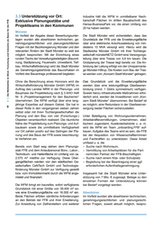 al LL. LL. .!!! 'tl - ... :::I .!!! t/) ns al ~ ns Cl> ·;: u; ::I 'tl c: 'tl c: ::I Cl c: ::I .r:: (.) ~ 0 LL. _;.: .!:! iii 3.3 Unterstützung vor Ort: Exklusive Planungsstäbe und Projektteams in den Kommunen Münster Im Vorfeld der Abgabe dieser Bewerbungsunter- lagen wurden alle absehbaren technischen, ge- nehmigungsrechtlichen und planungsrechtlichen Fragen mit der Bezirksregierung Münster und den relevanten Ämtern der Stadt Münster so weit wie möglich besprochen. Mit der Einrichtung eines runden Tischs der Verwaltungsbeteiligten (Bauord- nung, Stadtplanung, Feuerwehr, Umweltamt, Tief- bau , Wirtschaftsförderung) wird die Stadt Münster als Genehmigungsbehörde das Bauvorhaben im Vorfeld des Bauantrags professionell begleiten. Industrie hält die WFM in unmittelbarer Nach- barschaft Flächen im dritten Bauabschnitt des Hansa-BusinessPark vor, die einen Umfang von 20 ha haben werden . Die Stadt Münster wird sicherstellen, dass das Grundstück der FFB und die Erweiterungsfläche über eine elektrische Anschlussleistung von min- destens 10 MVA versorgt wird. Hierzu wird die Stadtwerke Münster GmbH mit ihrer Tochterge- sellschaft münsterNETZ GmbH eine Versorgungs- leitung über eine Trasse von 4,8 km bauen. Die Grobplanung der Trasse liegt bereits vor. Die An- bindung der Leitung erfolgt von der Umspannanla- ge Münster-Hiltrup. Die Kosten zum Bau der Tras- se werden vom "Konzern Stadt Münster" getragen. E Cl> ~ ... :ns ....E Q; ;: Cl> c ,.; • Ohne die Berechnung eines Honorars wird die Wirtschaftsförderung Münster GmbH (WFM) im Auftrag des Landes NRW in der Planungs- und Bauphase die Projektleitung nach § 3 AHO Heft Nr. 9 "Projektmanagement für den Bauherren" übernehmen. Die WFM verfügt über eine lang- jährige Expertise auf diesem Gebiet. Sie hat in dieser Rolle in den vergangenen sieben Jahren selbst oder mit ihren Tochtergesellschaften die Planung und den Bau von vier (Forschungs-) Objekten verantwortlich realisiert. Die räumliche Nähe der Projektleitung zum Planungs- und Auf- bauteam sowie die unmittelbare Verfügbarkeil vor Ort zahlen positiv auf das Gelingen der Pla- nung und des Baus der FFB sowie beschleunig- te Verfahren ein . Bereits vom Start weg stehen dem Planungs- stab FFB und dem Anlaufpersonal Büro-, Labor-, Technikum- und Hallenfläche im Umfang von ca. 2 2.070 m mietfrei zur Verfügung. Diese Über- gangsflächen werden von den städtischen Ge- sellschaften CeNTech GmbH und Technologie- förderung Münster GmbH zur Verfügung gestellt bzw. vom Immobilienmarkt durch die WFM ange- rnietet und finanziert. Die WFM bringt ein baureifes, sofort verfügbares 2 Grundstück mit einer Größe von 39.400 m so- 2 wie eine Erweiterungsfläche von 16.000 m ein. Seide Flächen erfüllen sämtliche Anforderungen an den Betrieb der FFB und ihrer Erweiterung . Zur Ansiedlung von Zellherstellern und weiterer Das Grundstück und die Erweiterungsfläche werden über eine leistungsfähige Glasfaseran- bindung (mind. 1 Gbit/s symmetrisch) verfügen. Soweit hierzu infrastrukturelle Maßnahmen erfor- derlich sind, werden die Investitionen vom "Kon- zern Stadt Münster" übernommen . Bei Bedarf ist es möglich, eine Redundanz in der Glasfaserver- sorgung beider Flächen sicherzustellen. Unter Beteiligung von Wohnungsunternehmen, Arbeitskräftevermittlungen , Unternehmen, städ- tischem Jugendamt, Ausländerbehörde u. a. m. wird die WFM ein Team "onboarding .FFB" auf- bauen . Aufgabe des Teams wird es sein, die FFB bei der Akquisition von Wissenschaftlern/innen und Fachkräften zu unterstützen. Diese Arbeit umfasst u. a. die - Suche nach Wohnraum , - Vermittlung von Arbeitsplätzen für die Part- nerin/den Partner der FFB-Beschäftigten - Suche nach einem Kita- oder Schulplatz - Begleitung bei der Beantragung einer ggf. erforderlichen Aufenthaltsgenehmigung. Insgesamt hat die Stadt Münster eine Unter- stützung von 7 Mio. € zugesagt. Belege zu den einzelnen Formen der Unterstützung können bei Bedarf vorgelegt werden . lbbenbüren Im Vorfeld wurden alle absehbaren technischen, genehmigungsrechtlichen und planungsrecht- lichen Fragen, soweit aktuell möglich, bespro-