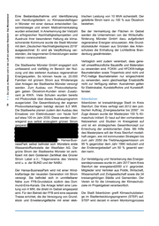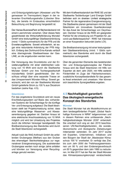 't:J c: ns ;: ....Vl Q) c: ::I ::E Vl ns Q t: 0 't:J c: ns .... (/) ... ~ ns E :;::; c. 0 c: 'Qj .::::I Eine Bestandsaufnahme und Identifizierung von Handlungsfeldern zu Klimawandelfolgen in Münster mit einer daraus entwickelten Ge- samtstrategie und einem Maßnahmenkatalog wurden entwickelt. ln Anerkennung der Vielzahl an erfolgreichen Nachhaltigkeitsprojekten und Ausdruck ihrer besonderen Haltung als klima- schonende Kommune wurde die Stadt Münster mit dem "Deutschen Nachhaltigkeitspreis 2019" ausgezeichnet. Er wird als Verpflichtung ver- standen, die begonnenen Entwicklungen weiter intensiv voranzutreiben . ...J ... Q) 't:J c: 't:J c: :I ... Q) Vl Vl ~ :I N 't:J c: ns ...J :I N ...t • Die Stadtwerke Münster GmbH engagiert sich umfassend und vielfältig im Bereich der Nut- zung und des weiteren Ausbaus regenerativer Energiequellen. So können heute ca. 20.000 Familien mit grünem Strom aus Windenergie über Anlagen der Stadtwerke Münster versorgt werden. Zum Ausbau von Photovoltaikanla- gen geben Ökostrom-Kunden einen Zusatz- cent je KW/h. Viele Schulen wurden bereits mit Photovoltaik über dieses Ausbauprogramm ausgerüstet. Die Gesamtleistung der eigenen Photovoltaikanlagen beträgt derzeit 8,5 MW. Die Stadtwerke planen zudem den Ausbau des Einsatzes von Elektrobussen von heute fünf auf etwa 100 im Jahr 2030. Diese werden über- nessPark selbst befindet sich Münsters erste Wasserstofftankstelle der Westfalen AG. Der grüne Strom der Stadtwerke Münster ist zerti- fiziert mit dem Goldenen Zertifikat des Grüner Strom Label e.V.; Trägervereine des Vereins sind u. a. der BUND und der NABU. Der Hansa-BusinessPark wird mit einer Wind- kraftanlage der neuesten Generation mit Strom versorgt. Sie befindet sich in unmittelbarer Nähe zum FFB-Grundstück südlich des Dort- mund-Ems-Kanals. Die Anlage liefert eine Leis- tung von 4 MW, die direkt im Gebiet eingespeist wird. Für den Betrieb der FFB wird eine separate Trasse errichtet, die die Versorgung von Grund- stück und Erweiterungsfläche mit einer elek- trisehen Leistung von 10 MVA sicherstellt. Der gelieferte Strom kann zu 100 % aus Ökostrom bestehen. Bei der Vermarktung der Flächen im Gebiet werden die Unternehmen von der Wirtschafts- förderung Münster GmbH dazu aufgefordert regenerative Energien einzusetzen. Alle Grund- stückskäufer müssen aus Gründen des Arten- schutzes die Einhaltung der Lichtleitlinie Bran- denburg gewährleisten. Vertraglich wird zudem vereinbart, dass gene- rell umweltfreundliche Baustoffe und Materialien zu verwenden sind. FCKW- und HFCKW-haltige Baumaterialien sowie Tropenholz sind nicht und PVC-haltige Baumaterialien nur eingeschränkt zu verwenden, wenn gleichwertige Ersatzstoffe nicht zur Verfügung stehen. Ausnahmen gelten für Elektrokabel, Kunststoffrohre und Kunststoff- fenster. lbbenbüren lbbenbüren ist kreisabhängige Stadt im Kreis Steinfurt. Der Kreis verfolgt seit 2012 den poli- tischen Auftrag "Energieautarkie bis 2050". Im Zuge dessen wurde der Masterplan 100 % Kli- maschutz initiiert. Er baut auf den vorhandenen Netzwerken und Studien im Kreisgebiet auf und ist ein strategisches Gesamtkonzept zur Erreichung der ambitionierten Ziele. Mit Hilfe des Masterplans will der Kreis Steinfurt modell- haft zeigen, wie mit kommunalen Strategien bis zum Jahr 2050 die Treibhausgasemission um 95 % gegenüber dem Jahr 1990 reduziert und der Endenergiebedarf um 50 % gesenkt wer- den kann. Zur Verstetigung und Verankerung des Energie- wendeprozesses wurde im Jahr 2017 beim Kreis Steinfurt der energieland2050 e.V. gegründet. Mitglieder sind Vertreter aus Politik, Wirtschaft, Wissenschaft und Zivilgesellschaft sowie die 24 kreisangehörigen Städte und Gemeinden. Der Verein ist für die Umsetzung der Klimaschutz- ziele im Projektgebiet verantwortlich. Die Stadt lbbenbüren greift Klimaschutzbelan- ge im Stadtentwicklungsprogramm (STEP) auf. STEP wird derzeit in einem Monitaringprozess