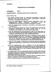 " Bundesrechtsanwaltskammer (BRAK) BESONDERES ELEKTRONISCHES ANWALTSPOSTFACH 2. Anlagen 2.1 Anlage 1: Eigenerklärung über die Zuverlässigkeit 2.2 Anlage 2: Referenzliste 2.3 Anlage 3: Bewerbergemeinschaftserklärung Seite 13 von 13