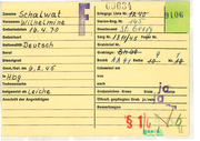 Nur t, vßl _8 Zurrame 109 Vornamen Geburtsdatum ~ Geburtsort Nationalität Beruf Bezirk Dienstgrad Gest./ Gef. am ln 2{;-.2 J.l bj . lfj- Exhumiert am von Todesursache noch belgesetzt als Grabzeichen: Kreuz