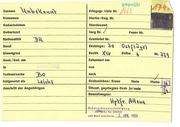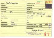 Zuname Krlegsgr. Liste Nr. ------~~~~~~~~~~------------- 1 Vornamen Sterbe·Reg. Nr. Geburtsdatum Stan Geburtsort Nationalität Feuer Nr. /) Grabbrief Nr. J Beruf Grablage: Dienstgrad Bezirk Gest./Gef. am Exhumiert am -------------------------------------1 ----~-----------------------------1 X I V, von nach Grabzeichen: Kreuz Anschrift der Angehörigen Reihe Nr. 2~'-/