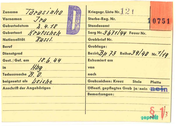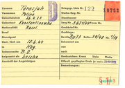 il 1 Jl/l'k lf lf a r c z 0 n Vornam--;;;;-W7n.d IIS 7aW - Zuname T Geburtsdatum 17, B11r szt un Nationa lität P._n 7e_ -~.".i ~ - T l 6 . 75- Geburtsort ~ ~· Grablage: Dienstgrad Bezirk Hhn. 7, 1 o. 4R (~n. J.c::ernr no Todesursache beigesetzt a ls 1- Grabbrief Nr. Krn tt tnh r er - - - - -- - ----- in R _ 0 7514 Kriegsgr. Liste Nr. ~ 0 Ro - - - - - - - - ____. Sterbe-Reg. Nr. Rflo - - - - -- -- J Standesamt s t~ (}Pnrn I Sarg Nr. 11371/_!IR Feuer Nr. Beruf Gest./ Gef. am i I Bp 73 Reihe 117 Exhumiert am 7 ' 2 Nr. ?5 --- - - - von nach Lei Che Grabzeichen: Kreuz Anschrift der Angehörigen Stele Platte öffentl. gepflegt~s Grab jat afe-Y..KX Bemerkungen : (\ - fu 6,f § 1'{1' "V i•Prüft .