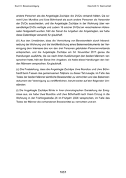 andere Personen als die Angeklagte Zschäpe die DVDs versandt hätten. Da sowohl Uwe Mundlos und Uwe Böhnhardt als auch andere Personen als Versender der DVDs ausscheiden, und die Angeklagte Zschäpe in der Wohnung über versandfertige DVDs verfügte und zudem 16 solcher DVDs bei verschiedenen Adressaten festgestellt wurden, hält der Senat die Angaben der Angeklagten, sie habe diese Datenträger versandt, für glaubhaft. (iii) Aus den Umständen, dass die Vernichtung von Beweismitteln durch Inbrandsetzung der Wohnung und die Veröffentlichung eines Bekennerdokuments der Vereinigung dem Interesse des von den drei Personen gebildeten Personenverbands entsprachen, und die Angeklagte Zschäpe am 04. November 2011 genau die Handlungen ausführte, die sie nach ihren Ausführungen den beiden Männern versprochen hatte, hält der Senat ihre Angaben, sie habe diese Handlungen den beiden Männern versprochen, für glaubhaft. (c) Die Feststellung, dass die Angeklagte Zschäpe Uwe Mundlos und Uwe Böhnhardt beim Fassen des gemeinsamen Tatplans zu dieser Tat zusagte, im Falle des Todes der beiden Männer sämtliche Beweismittel zu vernichten und das Bekennerdokument der Vereinigung zu veröffentlichen, beruht weiter auf den folgenden Umständen: (i) Die Angeklagte Zschäpe führte in ihrer chronologischen Darstellung der Ereignisse aus, sie habe Uwe Mundlos und Uwe Böhnhardt nach ihrem Einzug in die Wohnung in der Frühlingsstraße 26 im Frühjahr 2008 versprochen, im Falle des Todes der Männer die vorhandenen Beweismittel zu vernichten und ein
