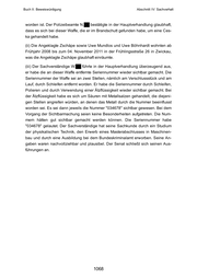verschiedener Taten vorhanden seien, diese ebenfalls mit verschiedenen Mikroskoparten auf Individualspuren untersucht würden. Die so festgestellten Spuren auf Munitionsteilen aus der einen Tat würden mit den sichergestellten Munitionsteilen aus einer oder mehreren weiteren Taten verglichen. In diesem Kontext führte der Sachverständige P.██ aus, er habe nach der dargestellten Methode die bei den einzelnen nunmehr angeklagten Taten sukzessive sichergestellten und an das Bundeskriminalamt gesandten Munitionsteile untersucht beziehungsweise nachuntersucht und verglichen. Er habe dabei entsprechend dem dargestellten Vorgehen Individualspuren, die vom Stoßboden, vom Schlagbolzen, vom Auswerfer und von den Feldern und Zügen hervorgerufen wurden, verglichen. Dabei habe sich, so der Sachverständige P.██, bei den Munitionsteilen aus der Tat vom 09. September 2000 zulasten von Enver Şimşek, die die Sammlungsnummer 44321 erhalten hätten, keine Übereinstimmung mit bereits in der Sammlung befindlichen Munitionsteilen ergeben. Dies habe bedeutet, dass bis dahin noch keine Munition beim Bundeskriminalamt asserviert gewesen sei, die mit derselben Waffe verschossen worden sei, die bei der Tat Şimşek zum Einsatz gekommen sei. Der Sachverständige P.██ erläuterte weiter, bei der Tat vom 13. Juni 2001 zum Nachteil des Abdurrahim Özüdoğru seien zwei Geschosse und zwei Hülsen sichergestellt worden, die die