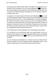 Schussentfernung dann 40 cm bis 80 cm betragen. Bei Verwendung eines Schalldämpfers könne die Schussentfernung auch weniger als 40 cm betragen haben. (ii) Der Schädeldurchschuss korrespondiere mit dem Projektileindruck in der Türe. Abdurrahim Özüdoğru müsse sich zum Zeitpunkt dieser Schussabgabe dem Schützen zugewandt in einer annähernd stehenden Position vor der Türe befunden haben. Bei dem Schädelsteckschuss deuteten die Schmauchspuren an dem Einschuss "Schläfe rechts" auf eine kürzere Schussentfernung hin. (iii) Die Schüsse seien mit einem Kaliber 7,65 mm abgegeben worden. (iv) Für die Annahme, dass zuerst der Schädeldurchschuss auf das stehende Opfer und anschließend der Schädelsteckschuss auf die Schläfe des zusammengesunkenen Opfers erfolgt sei, spreche der Umstand. dass keine Spuren festgestellt worden seien, die auf eine Abwehrreaktion des Getöteten hindeuteten. Die Schussabgabe könne aber auch in umgekehrter Reihenfolge abgegeben worden sein. (c) Der Sachverständige P.██, Sachverständiger für Schuss- Waffen bei dem Bundeskriminalamt, führte überzeugend aus, zu dem Fall in Nürnberg (Abdurrahim Özüdoğru) seien zwei Projektile und zwei Hülsen sichergestellt worden. (d) Aus einer Zusammenschau dieser Angaben folgt, dass der Schädeldurch- und der Schädelsteckschuss aus einer Waffe mit dem Kaliber 7,65 mm verursacht wurden. Nach den überzeugenden Ausführungen des gerichtsmedizinischen Sachverständigen verstarb Abdurrahim Özüdoğru infolge dieser Schüsse an einer zentralen Lähmung verbunden mit einer Blutaspiration.