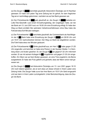 (a) Die Zeugin G.████ berichtete glaubhaft, Abdurrahim Özüdoğru sei ihr Nachbar gewesen. Er habe sich jeden Tag eine Zeitung bei ihr geholt. An dem fraglichen Tag sei er nachmittags gekommen, nachdem sie auf der Bank gewesen sei. (b) Der Polizeibeamte K.███ gab glaubhaft an, die Zeugin G.████ betreibe ein Lotto-Toto-Geschäft. Laut einem Einzahlungsbeleg, der vorgelegen habe, sei bei der Bank am 13. Juni 2001 kurz vor 16:00 Uhr eine Einzahlung erfolgt. Er habe den Weg zur Bank ermittelt. Bei optimalen Verkehrsverhältnissen ohne Stau habe die Fahrzeit etwa fünf Minuten betragen. (c) Der Polizeibeamte G.██ berichtete glaubhaft, die Commerzbank als Nachfolgerin der S.██ Bank habe eine Einzahlung der Zeugin G.████ um 08:55 Uhr und um 15:51 Uhr nachvollziehen können. Der Weg zur Bank sei abgefahren worden. Die Fahrt habe etwa vier Minuten gedauert. (d) Der Polizeibeamte B.██ führte glaubhaft aus, ein Herr S.██ habe gegen 21:25 Uhr angerufen und berichtet, er habe eine Person in der Gyulaer Straße 1 in Nürnberg sitzen und bluten gesehen. Er, der Zeuge B.██ sei gegen21:32 Uhr informiert worden. Er sei mit seinem Kollegen M.██ hingefahren und gegen 21:35 Uhr eingetroffen. Ein Mann sei auf dem Boden gesessen, an eine Türe angelehnt, die Beine ausgestreckt. Er habe den Puls gefühlt und gemerkt, dass der Mann schon kalt gewesen sei. (e) Die Zeugin G.████ hat Abdurrahim Özüdoğru am 13. Juni 2001 gegen 16:10 Uhr noch lebend gesehen, als er sich etwa um diese Uhrzeit in ihrem Laden eine Zeitung holte. Die Zeugin hatte zuvor bei ihrer Bank um 15:51 Uhr Geld eingezahlt und war dann in ihren Laden zurückgekehrt. Unter Berücksichtigung, dass die Zeugin die Bank