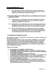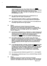 Der KKP unterstützt den BVG-Krisenstab. 5. Vorbereitende Maßnahmen nach dem 6-Phasen-Pian der WHO 5.1. Die Phasen 1 und 2: Es wurde kein neuer Virussubtyp bei Menschen entdeckt. ln Tieren können Virussubtypen umlaufen, die auch Menschen infizieren, jedoch wird das Risiko in Phase 1 als gering - in Phase 2 als erheblich bzgl. einer Erkrankung von Menschen bewertet. Da es keine nachgewiesenen Erkrankungen bei Menschen gibt, sind keine Maßnahmen erforderlich. 5.1.1. Die Bereiche und Stabsabteilungen benennen für ihre Verantwortungsbereiche die zur Betriebsdurchführung notwendigen Arbeiten und Funktionen. 5.1.2. Die Bereiche und Stabsabteilungen werden für ihre Verantwortungsbereiche die besonders gefährdeten, aber zur Betriebsdurchführung notwendigen technischen Einrichtungen (Lüftung in Technikräumen, die Energie- Kraftstoffversorgung etc.) benennen, um deren Funktion im Pandemiefall sicher zu stellen. 5.1.3. Aus den vorgenannten Maßnahmen ist für die jeweilige Organisationseinheit ein geeigneter Teilplan zu erstellen. 5.1.4. Verantwortliche für die Umsetzung der im Plan benannten Maßnahmen werden für den jeweiligen Organisationsbereich benannt. 5.1.5. Konsequenzen aus den Beförderungsbestimmungen für den Pandemiefall werden durch die zuständige Fachabteilung geprüft, benannt und umgesetzt. 5.2. Phase 3: Erste Krankheitsfälle beim Menschen (Pandemische Warnphase) Beginn der Alarmphase: Vereinzelt werden Menschen infiziert, eine Übertragung von Mensch zu Mensch ist jedoch sehr selten und tritt allenfalls bei engem Kontakt zu einem Infizierten auf. 5.2.1. Die vorhandenen Informationen über die zu erwartende Krankheit werden den Mitarbeiterinnen und Mitarbeitern durch interne Kommunikationsmittel nahe gebracht. Die Erstellung eines Kommunikationskonzeptes hierzu obliegt der für die betriebliche Kommunikation zuständigen Abteilung. 5.2.2. Die Bereiche und Stabsabteilungen stellen für die zuvor identifizierten Arbeiten und Funktionen ihrer Verantwortungsbereiche geeignete Schutzmaßnahmen fest und bereiten deren Umsetzung planarisch vor. 5.2.3. Die geplanten Maßnahmen werden den Mitarbeiterinnen und Mitarbeitern entsprechend der Gefährdungssituation bekannt gemacht. 5.2.4. Die Bereiche und Stabsabteilungen führen in regelmäßigem Abstand aber mindestens alle 2 Jahre, eine erneute Bedarfsermittlung für PSA in Ihren Seite 4 von 10