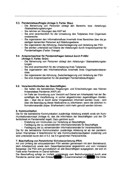 gerung erfolgt ebenfalls zentral bei der BVG. Hierzu wird durch die für die Liegen- schaften der BVG zuständige Abteilung ein Lagerort bestimmt. Eine Nach- bzw. Neubestellung erfolgt entsprechend des Verbrauches, jedoch spä- testens nach 5 Jahren (Mindesthaltbarkeit bei Mund-Nase-Schutz). Die Finanzierung erfolgt per Umlage. 8. Verteilung der PSA im Pandemiefall Die zentral gelagerte PSA wird ab Eintritt der pandemischen Warnphase 5 an die Bereiche ausgegeben. Die Logistik der Verteilung wird mit den Pandemiebeauftrag- ten und den Ansprechpartnern für Pandemie abgestimmt (s. 5.3, 5.4 und Anlage 1). Die Stabsabteilung Arbeits-, Brand- und Umweltschutz- wird beauftragt, im Rahmen der fachlichen Verantwortung und Zuständigkeit Aktualisierungen dieser Vvfg durchzuführen. Der Vorstand Dr. Nikutta Anlagen Anlage Anlage Anlage Anlage 1: 2: 3: 4: Dr. Haenecke Schulte lnfluenza-Pandemieplan der Berliner Verkehrsbetriebe (Rahmenplan) Teilplan-Pandemie (Blanko) Organisationsstruktur Kommunikationskonzept