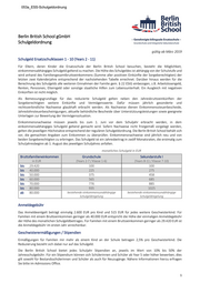 054a_ESS-Schulgeldordnung Berlin British School gGmbH Schulgeldordnung gültig ab März 2019 Schulgeld Ersatzschulklassen 1 - 10 (Years 2 - 11) Für Eltern, deren Kinder die Ersatzschule der Berlin British School besuchen, besteht die Möglichkeit, einkommensabhängiges Schulgeld geltend zu machen. Die Höhe des Schulgeldes ist abhängig von der Schulstufe und wird anhand des Familiengesamtbruttoeinkommens (Summe aller positiven Einkünfte der Sorgeberechtigten) der letzten zwei Kalenderjahre entsprechend der nachstehenden Tabelle errechnet. Darüber hinaus werden für die Berechnung des Schulgelds alle weiteren Einnahmen der Familie gem. § 22 EStG einbezogen, z.B. Arbeitslosengeld, Renten, Pensionen, Elterngeld oder sonstige staatliche Hilfen zum Lebensunterhalt. Ein Ausgleich mit negativen Einkünften ist nicht möglich. Als Bemessungsgrundlage für das reduzierte Schulgeld gelten neben den Jahresbruttoeinkünften der Sorgeberechtigten weitere Einkünfte und Vermögenswerte. Dafür müssen jährlich gesonderte und rechtsverbindliche Nachweise glaubhaft erbracht werden. Als Nachweise dienen Einkommenssteuerbescheide, Jahreslohnsteuerbescheinigungen, aktuelle behördliche Bescheide über Unterstützungsleistungen sowie geeignete Unterlagen zur Bewertung der Vermögenssituation. Einkommensnachweise müssen jeweils bis zum 1. Juni vor dem Schuljahr erbracht werden, in dem einkommensabhängiges Schulgeld geltend gemacht wird. Sofern Nachweise nicht fristgemäß vorgelegt werden, gelten die jeweiligen Höchstsätze entsprechend der regulären Schulgeldordnung. Die Berlin British School behält sich vor, die gemachten Angaben zum Einkommen zu überprüfen. Einkommensnachweise sind jährlich neu und von beiden Sorgeberechtigten zu erbringen. Das Schulgeld ist ein Jahresbeitrag in zwölf Monatsraten, die erstmalig zum Schuljahresbeginn ab 1. August des jeweiligen Schuljahres anfallen. monatliches Schulgeld in EUR Bruttofamilieneinkommen Grundschule Sekundarstufe I in EUR (Years 2-7 / Klasse 1-6) (Years 8-11 / Klasse 7-10) bis 29.420 100 100 bis 40.000 225 275 bis 50.000 375 458 bis 60.000 565 685 bis 70.000 776 885 bis 80.000 935 1025 ab 80.000 bestehende einkommensunabhängige bestehende einkommensunabhängige Schulgeldregelung Schulgeldregelung Anmeldegebühr Das Anmeldeentgelt beträgt einmalig 2.600 EUR pro Kind und 515 EUR für jedes weitere Geschwisterkind. Für Familien mit einem Bruttoeinkommen geringer als 40.000 EUR entspricht die Höhe der einmaligen Anmeldegebühr der Höhe des monatlichen Schulgeldbeitrages. Für Familien mit einem Bruttoeinkommen geringer als 29.420 EUR ist die Anmeldegebühr im ersten Jahr anrechenbar. Geschwisterermäßigungen / Stipendien Ermäßigungen für Familien mir mehr als einem Kind an der Schule betragen 2,5% pro Geschwisterkind. Die Reduzierung bezieht sich dabei nur auf das Schulgeld. Die Berlin British School bietet jedes Schuljahr Stipendien an, jeweils im Wert von 10% bis 50% der Jahresschulgebühr. Für ein Stipendium können sich Schülerinnen und Schüler ab Year 5 oder höher bewerben, dies gilt sowohl für Bestandsschülerinnen und Schüler als auch für Neuzugänge. Nähere Informationen hierzu erfragen Sie bitte im Admissions Office. 1