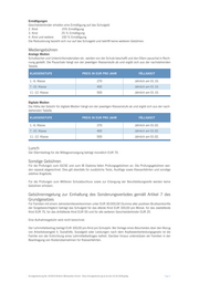 Ermäßigungen Geschwisterkinder erhalten eine Ermäßigung auf das Schulgeld 2. Kind 15% Ermäßigung 3. Kind 25 % Ermäßigung 4. Kind und weitere 100 % Ermäßigung Die Reduzierung bezieht sich nur auf das Schulgeld und betrifft keine weiteren Gebühren. Mediengebühren Analoge Medien Schulbücher und Unterrichtsmaterialien etc. werden von der Schule beschafft und den Eltern pauschal in Rech- nung gestellt. Die Pauschale hängt von der jeweiligen Klassenstufe ab und ergibt sich aus der nachstehenden Tabelle. KLASSENSTUFE PREIS IN EUR PRO JAHR FÄLLIGKEIT 1.- 6. Klasse 270 Jährlich am 01.10. 7.-10. Klasse 400 Jährlich am 01.10. 11.-12. Klasse 500 Jährlich am 01.10. Digitale Medien Die Höhe der Gebühr für digitale Medien hängt von der jeweiligen Klassenstufe ab und ergibt sich aus der nach- stehenden Tabelle. KLASSENSTUFE PREIS IN EUR PRO JAHR FÄLLIGKEIT 1.- 6. Klasse 270 Jährlich am 01.02. 7.-10. Klasse 400 Jährlich am 01.02. 11.-12. Klasse 500 Jährlich am 01.02. Lunch Der Elternbeitrag für die Mittagsversorgung beträgt monatlich EUR 70. Sonstige Gebühren Für die Prüfungen zum IGCSE und zum IB Diploma fallen Prüfungsgebühren an. Die Prüfungsgebühren wer- den separat abgerechnet. Dies gilt ebenfalls für zusätzliche Tests, Ausflüge sowie Klassenfahrten und sonstige additive Angebote. Für die Prüfungen zum Mittleren Schulabschluss sowie zur Erlangung der Berufsbildungsreife werden keine Gebühren erhoben. Gebührenregelung zur Einhaltung des Sonderungsverbotes gemäß Artikel 7 des Grundgesetzes Für Familien mit einem Jahresfamilieneinkommen unter EUR 30.000,00 (Summe aller positiven Bruttoeinkünfte der Sorgeberechtigten) beträgt das Schulgeld für das älteste Kind EUR 100,00 pro Monat, für das zweitälteste Kind EUR 75, für das drittälteste Kind EUR 50 und für alle weiteren Geschwisterkinder EUR 25. Eine Aufnahmegebühr wird nicht berechnet. Der Lehrmittelbeitrag beträgt EUR 100,00 pro Kind pro Schuljahr. Bei Vorlage eines Bescheides über den Bezug von Arbeitslosengeld II, Sozialhilfe, Sozialgeld oder Leistungen nach dem Asylbewerberleistungsgesetz ist die Familie von der Entrichtung eines Lehrmittelbeitrages befreit. Darüber hinaus unterstützen wir Familien in der Beantragung von Kostenübernahmen für Klassenfahrten. Schulgeldordnung No. 01/2014 © Berlin Metropolitan School - Diese Schulgeldordnung ist ab dem 01.02.2018 gültig. Page 2
