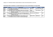 Anlage 1 zu S 17-/19004 über Politisch motivierte Kriminalität von rechts und ihre Dokumentation im Jahr 2015 Zähldelikt Tatzeit Sachverhalt Straße Ortsteil Presse § 223 14.09.2015 Der Beschuldigte beleidigte die Geschädigten und Motzstr. Schöneberg nein StGB 21:00:00 spuckte beiden mehrfach ins Gesicht. In der folgenden körperlichen Auseinandersetzung ging der Geschädigte zu Boden, daraufhin versuchte der Beschuldigte, ihm gegen den Kopf zu treten. § 223 26.09.2015 Der Geschädigte wurde von einem unbekannten S-Bhf. Mitte nein StGB 05:45:00 Täter homophob beleidigt und geschlagen. Alexanderplatz § 223 06.10.2015 Der Geschädigte wurde in der Flüchtlingsunterkunft Ostpreußendamm Lichterfelde ja StGB 23:50:00 von den drei Beschuldigten aufgrund seiner Homosexualität geschlagen und in den Arm gebissen. § 223 31.10.2015 Zwischen dem Beschuldigten und dem Geschädigten S-Bhf. Westkreuz Charlottenburg nein StGB 04:30:00 gab es eine Auseinandersetzung aufgrund der sexuellen Orientierung des Geschädigten. Dabei schlug der Beschuldigte den Geschädigten. § 223 13.11.2015 Der Geschädigte wurde in einer Straßenbahn Bernauer Str. Gesundbrunnen nein StGB 16:25:00 homophob beleidigt und getreten. Legende: Abkürzung Bezeichnung A/A Ausländer-/Asylthematik asm antisemitisch BP Beschäftigungspolitik fref fremdenfeindlich ggAs gegen Asylunterkünfte ggli gegen links ggMe gegen Medien ggSta gegen den Staat, seine Einrichtungen und Symbole MI Militär 40