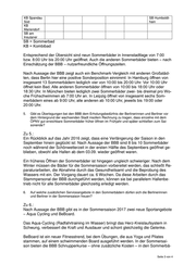 KB Spandau SB Humboldt- Süd hain KB Mariendorf SB am Insulaner SB = Sommerbad KB = Kombibad Entsprechend der Übersicht sind neun Sommerbäder in Innenstadtlage von 7:00 bzw. 8:00 Uhr bis 20:00 Uhr geöffnet. Auch die anderen Sommerbäder bieten – nach Einschätzung der BBB – nutzerfreundliche Öffnungszeiten. Nach Aussage der BBB zeigt auch ein Benchmark-Vergleich mit anderen Großstäd- ten, dass Berlin hier eine positive Sonderposition einnimmt: In Hamburg öffnen von insgesamt 13 Sommerbädern lediglich vier von 10:00 bis 20:00 Uhr. Vor 10:00 Uhr öffnet kein Bad. Alle anderen Sommerbäder öffnen von 10:00 bis 18:00 Uhr oder 18:30 Uhr. In München bieten lediglich zwei Sommerbäder zwei- bis dreimal pro Wo- che Frühschwimmen ab 7:00 Uhr an. In Leipzig öffnet von insgesamt sechs Som- merbädern eines ab 9:00 Uhr, alle anderen ab 10:00 Uhr, jeweils bis 19:00 oder 20:00 Uhr. 5. Gibt es Überlegungen bei den BBB dem Erholungsbedürfnis der Berlinerinnen und Berliner vor dem Hintergrund der wachsenden Stadt insofern Rechnung zu tragen, dass einzelne mit dem ÖPNV gut erreichbare Sommerbäder früher öffnen im Frühjahr und später schließen zum Sai- sonende? Zu 5.: Ein Rückblick auf das Jahr 2016 zeigt, dass eine Verlängerung der Saison in den September hinein geglückt ist: Nach Aussage der BBB sind 8 bis 10 Sommerbäder noch während der Schönwetterzeit in der ersten Hälfte des Septembers geöffnet ge- blieben, obwohl alle Hallen ab dem 03.09. wieder geöffnet waren. Ein früheres Öffnen der Sommerbäder ist hingegen ungleich schwieriger. Nach dem Winter müssen die Bäder für die Sommersaison vorbereitet werden, das schließt Re- paraturarbeiten, die Abnahme durch das Gesundheitsamt und die Beprobung des Wassers mit ein. Der Vorgang dauert ca. 6 Wochen. Da diese Arbeiten durch das Stammpersonal der BBB durchgeführt werden, können sie bei parallelem Hallenbe- trieb nicht für alle Sommerbäder gleichzeitig erledigt werden. 6. Auf welche zusätzlichen Serviceangebote in den Sommerbädern dürfen sich die Berlinerinnen und Berliner in der Sommersaison freuen? Zu 6.: Nach Aussage der BBB gibt es in der Sommersaison 2017 zwei neue Sportangebote – Aqua Cycling und BeBoard. Das Aqua-Cycling (Radfahrtraining im Wasser) bringt das Herz-Kreislaufsystem in Schwung, verbessert die Kraft und Ausdauer und schont gleichzeitig die Gelenke. BeBoard ist ein neuer Fitnesstrend, bei dem Übungen, die aus Yoga und Pilates stammen, auf einem schwimmenden Board ausgeführt werden. In der Sommersai- son bieten die BBB Schnupperkurse – ohne zusätzliche Kosten – in den Sommerbä- Seite 3 von 4