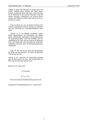 Abgeordnetenhaus Berlin – 17. Wahlperiode Drucksache 17 / 10 751 Zukunft in jedem Fall finanziell zu kompensieren sein werden. Darüber hinaus erklären sich einige Künst- lerinnen und Künstler nicht mehr bereit, weitere Termine für die Spielzeiten in der sanierten Staatsoper Unter den Linden zuzusagen. Forderungen von externen Künst- lerinnen und Künstlern können daher derzeit nicht aus- geschlossen werden. Frage 15: Durch wen, wie, in welchem Umfang und in welchen Zeitabständen wird die Leitung der Staatsoper über den Fortschritt der Sanierungsmaßnahmen infor- miert? Antwort zu 15.: Im Rahmen wöchentlich stattfin- dender Besprechungen auf Arbeitsebene und darüber hinaus stattfindender regelmäßiger Abstimmungstermine auf Staatssekretärsebene sowie mit Intendanz und Ge- schäftsführung der Oper wird die Leitung der Staatsoper Unter den Linden über den Fortschritt der Sanierungs- maßnahmen informiert und in die Entscheidungsprozesse eingebunden. Frage 16: Wie bewertet der Senat den Imageschaden für Berlin und die Staatsoper, der durch die neuerliche Verzögerung entsteht? Antwort zu 16.: Angesichts der dargestellten Sachlage geht der Senat davon aus, dass kein Imageschaden für Berlin und die Staatsoper eintreten wird. Berlin, den 28. August 2012 In Vertretung R. L ü s c h e r ................................ Senatsverwaltung für Stadtentwicklung und Umwelt (Eingang beim Abgeordnetenhaus am 31. August 2012) 4