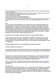 -3- 5. a.) An welchen Berliner Universitäten wird bei der kooperativen Promotion vorab ein Eignungsfeststellungs- verfahren durchgeführt? b.) Wie viele Eignungsfeststellungsverfahren wurden in den letzten Jahren durchgeführt und wie viele Be- werber fielen dabei durch? (Angaben bitte nach Universität aufschlüsseln) c.) Was beinhalten diese Verfahren? d.) Wie sind diese Verfahren jeweils rechtlich geregelt? e.) Wie lange dauert es bis zum Abschluss dieser Verfahren? f.) Wie ließen sich aus Sicht der Humboldt-Universität, aus der der Freien Universität, aus Sicht der Techni- schen Universität und aus Sicht der Universität der Künste die Eignungsfeststellungsverfahren vereinfa- chen? Zu 5.: a) An der Freien Universität Berlin sind in weniger als zehn Promotionsordnungen Eig- nungsprüfungen für Fachhochschulabsolventen und Fachhochschulabsolventinnen mit Diplomabschluss vorgesehen. An der Humboldt-Universität zu Berlin gibt es keine Eig- nungsprüfungen. An der Technischen Universität gibt es Eignungsprüfungen ebenfalls nur für Fachhochschulabsolventinnen und Fachhochschulabsolventen mit Diplomabschluss. Die Universität der Künste Berlin führt Eignungsprüfungen durch. Die Charité - Universi- tätsmedizin Berlin führt keine Eignungsprüfungen durch. b) Die Berliner Universitäten verfügen nicht über die entsprechenden Zahlen. c) Die Verfahren sind jeweils sehr unterschiedlich geregelt. Exemplarisch verweist die Freie Universität Berlin auf einen Fachbereich, an dem bis zu drei mündliche Feststel- lungsprüfungen von jeweils 30 Minuten Dauer auf dem Gebiet der beabsichtigten Promoti- on möglich sind. d) Die Regelungen finden sich in den jeweiligen Promotionsordnungen. e) Hierüber liegen keine Zahlen vor. f) Insbesondere aufgrund der abnehmenden Zahl von Absolventinnen und Absolventen mit Diplomabschluss einer Fachhochschule erkennen die Universitäten hierfür keinen Bedarf. 6. a.) Der Entwurf der Hochschulvertrages für die Jahre 2018-2022 sieht vor, Mittel für gemeinsame Gaduier- tenkollegs von Fachhochschulen und Universitäten in ausgewählten Bereichen zur Verfügung zu stellen. Voraussetzung für die Antragstellung soll das Vorliegen einer verbindlichen Promotionsvereinbarung zwi- schen den beteiligten Hochschulen sein. Wie viele Mittel sind hierfür vorgesehen? b.) Prof. Dr. Monika Gross, Präsidentin der Beuth-Hochschule, erklärte, sie wünsche sich „ein zentrales Promotionskolleg, an dem wir kooperativ promovieren“. Welche Pläne bestehen zur Einrichtung eines sol- chen Kollegs? Zu 6 a) und b): Die Berliner Fachhochschulen befinden sich in Abstimmung mit den Berliner Universitäten über ein kooperatives Promotionszentrum, das mindestens drei Promotionskollegs vor- sieht. Dieses soll außerhalb der hochschulvertraglich festgelegten Mittel vom Institut für angewandte Forschung (IFAF) unterstützt werden. Die Höhe der Mittel wird in Abstimmung mit den Hochschulen festgelegt.