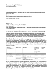 Drucksache 18 / 12 003 Schriftliche Anfrage 18. Wahlperiode Schriftliche Anfrage der Abgeordneten Dr. Michael Efler und Harald Wolf (LINKE) vom 09. August 2017 (Eingang beim Abgeordnetenhaus am 11. August 2017) zum Thema: Nutzung solarer Strahlungsenergie 2: Gebäuden der öffentlichen Unternehmen und Hochschulen und Antwort vom 24. August 2017 (Eingang beim Abgeordnetenhaus am 30. Aug. 2017) Die Drucksachen des Abgeordnetenhauses sind bei der Kulturbuch-Verlag GmbH zu beziehen. Hausanschrift: Sprosserweg 3, 12351 Berlin-Buckow · Postanschrift: Postfach 47 04 49, 12313 Berlin, Telefon: 6 61 84 84; Telefax: 6 61 78 28.