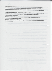 - in den vorgenannten Einrichtungen sowie in Universitäten, Schulen und Kindergärten, soweit deren Betrieb nicht gänzlich eingestellt wird, ein generelles Betretungsverbot für Personen, die sich in den letzten 14 Tagen in Risikogebieten im Ausland oder besonders betroffenen Regionen im Inland nach RKI-Klassifizierung aufgehalten haben - Auflagen für Mensen, Restaurants, Speisegaststätten und Hotels, das Risiko einer Verbreitung des Corona-Virus zu minimieren, etwa durch Abstandsregelung für die Tische, Reglementierung der Besucherzahl, Hygienemaßnahmen und „hinweise - Regelungen, 'dass Übernachtungsangebote im Inland nur zu notwendigen und ausdrücklich nicht zu touristischen Zwecken genutzt werden können, - Regelungen, dass Restaurants und Speisegaststätten generell frühestens ab 6 Uhr zu öffnen und spätestens ab 18 Uhr zu schließen sind.