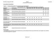 Schriftliche Anfrage S18/13383 Anlage 1 12.02.2018 Universität der Künste Berlin Universität der Künste Berlin Tabelle 1.11: Studienanfängerplätze für lehramtsbezogene Studiengänge* Zulassungszahlen bzw. rechnerische Aufnahmekapazitäten pro Studienjahr Schulform Studiengänge 2008 2009 2010 2011 2012 2013 2014 2015 2016 2017 ISS/Gym lehramtsbezogene Bachelorstudiengänge 102 102 102 ab WS 2015/2016 ISS/Gym Masterstudiengänge (Master of Education) 102 102 102 ab WS 2015/2016 Grundschule lehramtsbezogene Bachelorstudiengänge 30 30 30 ab WS 2015/2016 Grundschule Masterstudiengänge (Master of Education) 30 30 30 ab WS 2015/2016 Gymnasien lehramtsbezogene Bachelorstudiengänge 48 48 48 48 48 48 48 bis WS 2014/2015 Gymnasien Masterstudiengänge (Master of Education) 48 48 48 48 48 48 48 bis WS 2014/2015 Grund-/Sekundarschule lehramtsbezogene Bachelorstudiengänge 84 84 84 84 84 84 84 bis WS 2014/2015 Grund-/Sekundarschule Masterstudiengänge (Master of Education) 84 84 84 84 84 84 84 bis WS 2014/2015 Abkürzungen: ISS/Gym Integrierte Sekundarschulen und Gymnasien Erläuterungen: * Zum Wintersemester 2015/2016 wurde die Studienstruktur und die statistische Erfassung der Studierenden an die Vorgaben des novellierten Lehrkräftebildungsgesetzes angepasst. Seite 6 von 7