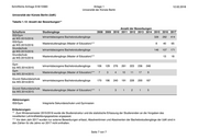 Schriftliche Anfrage S18/13383 Anlage 1 12.02.2018 Universität der Künste Berlin Universität der Künste Berlin (UdK) Tabelle 1.12: Anzahl der Bewerbungen** Anzahl der Bewerbungen Schulform Studiengänge 2008 2009 2010 2011 2012 2013 2014 2015 2016 2017 ISS/Gym lehramtsbezogene Bachelorstudiengänge 326 282 414 ab WS 2015/2016 ISS/Gym Masterstudiengänge (Master of Education)*** 8 40 65 ab WS 2015/2016 Grundschule lehramtsbezogene Bachelorstudiengänge 146 107 171 ab WS 2015/2016 Grundschule Masterstudiengänge (Master of Education)*** 13 18 ab WS 2015/2016 Gym lehramtsbezogene Bachelorstudiengänge 106 129 276 261 223 236 248 bis WS 2014/2015 Gym Masterstudiengänge (Master of Education)*** 7 3 4 10 11 17 9 bis WS 2014/2015 Grund-/Sekundarschule lehramtsbezogene Bachelorstudiengänge 170 196 240 191 228 200 187 bis WS 2014/2015 Grund-/Sekundarschule Masterstudiengänge (Master of Education)*** 1 3 1 2 1 5 bis WS 2014/2015 Abkürzungen: ISS/Gym Integrierte Sekundarschulen und Gymnasien Erläuterungen: ** Zum Wintersemester 2015/2016 wurde die Studienstruktur und die statistische Erfassung der Studierenden an die Vorgaben des novellierten Lehrkräftebildungsgesetzes angepasst. *** Vor dem Jahr 2017 wurden nur externe Bewerbungen erfasst, Absolventinnen und Absolventen der Bachelorstudiengänge der UdK sind in den Zahlen für die Jahre vor 2017 nicht enthalten. Seite 7 von 7