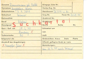 Zuname 2;/1111/tM~AM... /,,l1{11J);,rxAA- Geburtsdatum ~ A, A~ q 0 Geburtsort JJJ.u.„1h-C\ Vornamen C Notianolität Dief\1tgrod Gest./ Gef. am l ll Tod esurs athe ~ f')(Y 1 Sterbe·Reg. Nr. Standesomt ......,(}{ ~ \Q - Sarg Nr. t ){,.(. Feuer Nr. ] X Bez;rk Re;he Nr. Exhumiert am von noch beigesetzt ols Grobzeichen: Kreuz Anschrift der Angehor;gen Oi'lelltl. geAegtes Grob ja I !'ein X(\IM+ }~rnv1] '', l 5~} ~l.J Gro l>brief N r. \ff ~- b . ltY Jt~vJn~-~ Kriegsgr. liste Nr. Stele Plotte Bemerl.ungen: u.,(M.. iL~ 1 lt4 ,l.1.k~ t1h~tJ