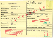 Zuname Schmirebk Vornamen Geburtsdatum - Konstantin 16 .10.72 Standesamt dt 1289 Beruf !i # Reihe Dienstgrad beigesetzt als - -·- - - - - - - - - - - - Sterbe-Reg. Nr. Sarg Nr, Geburtsort Nationalität -- - Leiche Grabzeichen: Kreuz 241/45 Nr. Ste le Platte