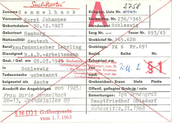 Zuname Vornamen Stortde1amt Gebut1sort So•g Nr. Notianol ltät Gt abbr{e f Nr. Beruf Groblage1 Berirk t Feuer Nr. F 44AA/ ~A Nr. Reihe Exhumiert am in von beiguetzt als G•obzeichen : Kreuz Anschrift der Ang eh örigen St e le Platte