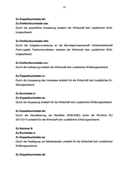 16 Zu Doppelbuchstabe bb: Zu Dreifachbuchstabe aaa: Durch die sprachliche Anpassung entsteht der Wirtschaft kein zusätzlicher Erfül- lungsaufwand. Zu Dreifachbuchstabe bbb: Durch die Aufgabenzuweisung an die Berufsgenossenschaft Verkehrswirtschaft Post-Logistik Telekommunikation entsteht der Wirtschaft kein zusätzlicher Erfül- lungsaufwand. Zu Dreifachbuchstabe ccc: Durch die Aufhebung entsteht der Wirtschaft kein zusätzlicher Erfüllungsaufwand. Zu Doppelbuchstabe cc: Durch die Anpassung des Verweises entsteht für die Wirtschaft kein zusätzlicher Er- füllungsaufwand. Zu Buchstabe b: Zu Doppelbuchstabe aa: Durch die Anpassung entsteht für die Wirtschaft kein zusätzlicher Erfüllungsaufwand. Zu Doppelbuchstabe bb: Durch die Aktualisierung der Richtlinie 2009/16/EG durch die Richtlinie EU 2017/2110 entsteht für die Wirtschaft kein zusätzlicher Erfüllungsaufwand. Zu Nummer&: Zu Buchstabe a: Zu Doppelbuchstabe aa: Durch die Festlegung von Mindestzeiten entsteht für die Wirtschaft kein zusätzlicher Erfüllungsaufwand. Zu Doppelbuchstabe bb: