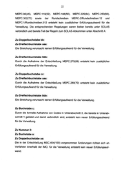 22 MEPC.90( 45), MEPC.119(52), MEPC.302(72) sowie der MEPC.166(56), Rundschreiben MEPC.225(64), MEPC.250(66), MEPC-2/Rundschreiben.12 und MEPC.1 /Rundschreiben.512 entsteht kein zusätzlicher Erfüllungsaufwand für die Verwaltung. Die entsprechenden Regelungen waren bisher bereits unter SOLAS verbindlich und bereits Teil der Regeln zum SOLAS-Abkommen unter Abschnitt A. Zu Doppelbuchstabe bb: Zu Dreifachbuchstabe aaa: Die Streichung verursacht keinen Erfüllungsaufwand für die Verwaltung. Zu Dreifachbuchstabe bbb: Durch die Aufnahme der Entschließung MEPC.275(69) entsteht kein zusätzlicher Erfüllungsaufwand für die Verwaltung. Zu Doppelbuchstabe cc: Zu Dreifachbuchstabe aaa: Durch die Aufnahme der Entschließung MEPC.280(70) entsteht kein zusätzlicher Erfüllungsaufwand für die Verwaltung. Zu Dreifachbuchstabe bbb: Die Streichung verursacht keinen Erfüllungsaufwand für die Verwaltung. Zu Buchstabe c: Durch die formelle Aufnahme von Codes in Unterabschnitt 3, die bereits in Unterab- schnitt 1 gelistet und damit verbindlich sind, entsteht kein neuer Erfüllungsaufwand für die Verwaltung. Zu Nummer2: Zu Buchstabe a: Zu Doppelbuchstabe aa: Die in der Entschließung MSC.454(100) vorgenommen Änderungen richten sich an Verfahren innerhalb der IMO, für die Verwaltung entsteht kein neuer Erfüllungsauf- wand.