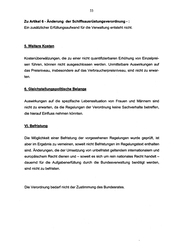 33 Zu Artikel 6 • Änderung der Schiffsausrüstungsverordnung • : Ein zusätzlicher Erfüllungsaufwand für die Verwaltung entsteht nicht. 5. Weitere Kosten Kostenüberwälzungen, die zu einer nicht quantifizierbaren Erhöhung von Einzelprei- sen führen, können nicht ausgeschlossen werden. Unmittelbare Auswirkungen auf das Preisniveau, insbesondere auf das Verbraucherpreisniveau, sind nicht zu erwar- ten. 6. Gleichstellungspolitische Belange Auswirkungen auf die spezifische Lebenssituation von Frauen und Männern sind nicht zu erwarten, da die Regelungen der Verordnung keine Sachverhalte betreffen, die hierauf Einfluss nehmen könnten. VI. Befristung Die Möglichkeit einer Befristung der vorgesehenen Regelungen wurde geprüft, ist aber im Ergebnis zu verneinen, soweit nicht Befristungen im Regelungstext enthalten sind. Änderungen, die der Umsetzung von unbefristet geltendem internationalem und europäischem Recht dienen und - soweit es sich um rein nationales Recht handelt - dauernd für die Aufgabenerfüllung durch die Bundesverwaltung benötigt werden, sind nicht zu befristen. Die Verordnung bedarf nicht der Zustimmung des Bundesrates.